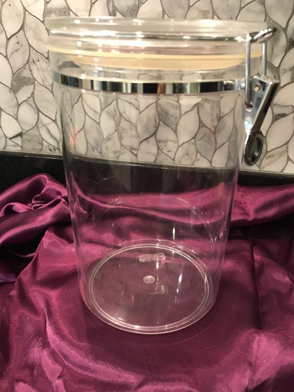 VenmoACRYLIC JAR 10 inches tall and 6.5 inch diameter. Has rubber seal ring and latch-down clamp. Perfect for storing flour, sugar, pasta, cereal or as a decoration centerpiece filled with anything from ornaments to easter eggs. Only $7 Cash/Venmo. In Sandy. In great condition. See all 4 photos. 801-201-5350.