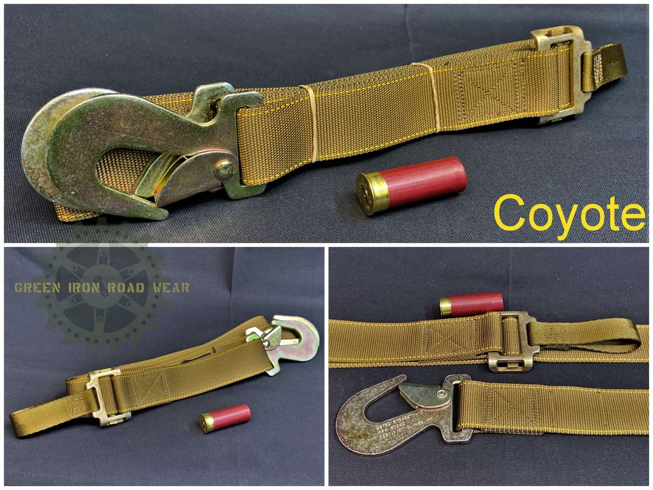 Thes easily adjustable straps are newly manufactured by myself from 100% mil-spec parts. My strap is a significant upgrade from the often missing, and very hard to adjust, sagging safety strap that goes across the back of military cargo truck’s troop seats to help prevent personnel from falling out. Not intended for life safety devices.