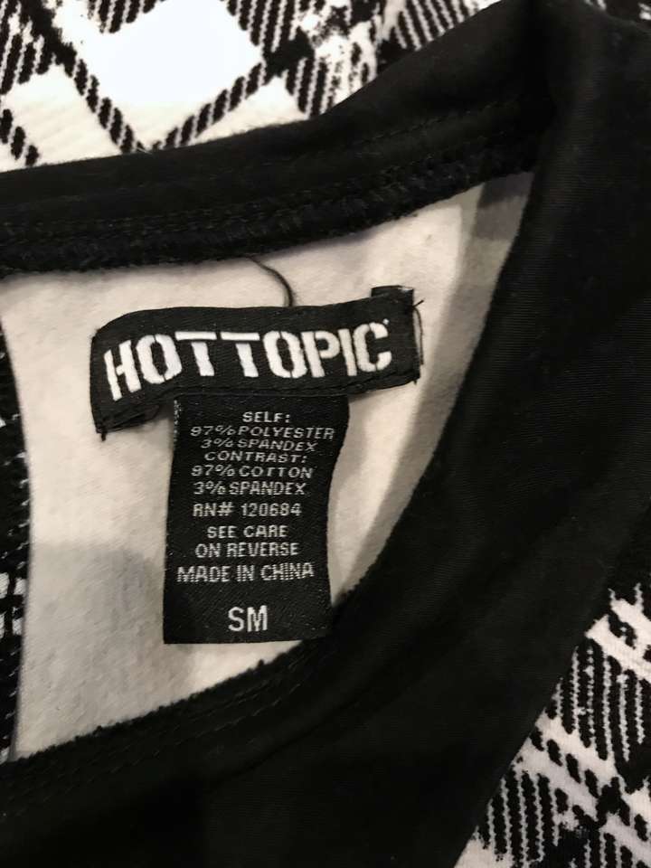 34 long from shoulder Self: 97% polyester; 3% spandex Contrast: 97% cotton; 3% spandex Wash cold; dry low