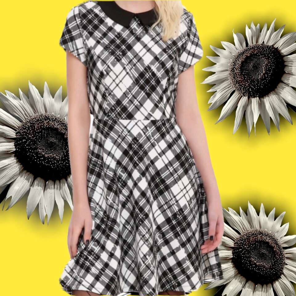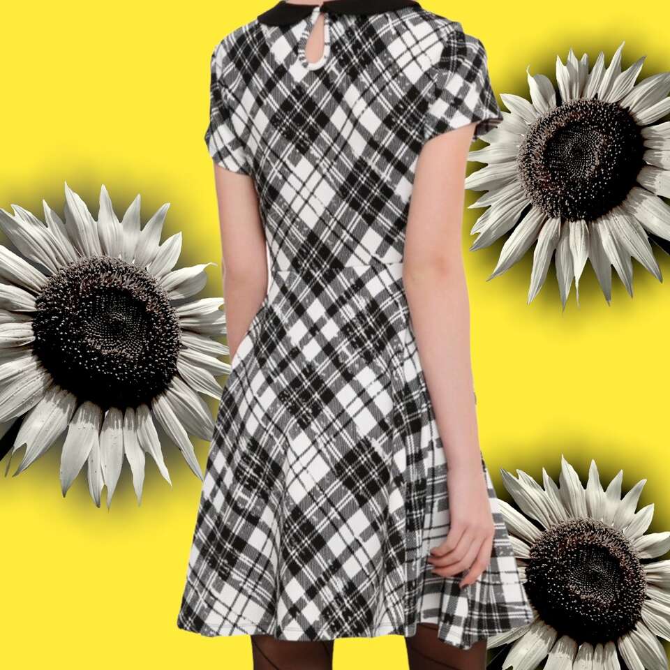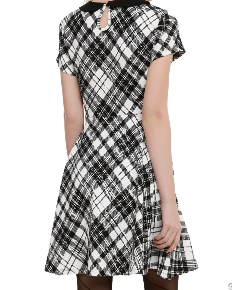 Fit and flare style dress with a black and white plaid print, black collar and keyhole accent on the back. Like new! Only worn once for a recital. Paid $35