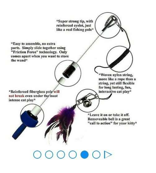 Comes with two feathery attachments for your cat to chase and a detachable bell to keep her interested.