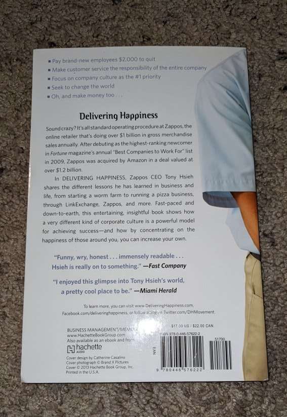 Delivering Happiness, a Path to Profits, Passion, and Purpose. By Tony Hsieh, Zappos CEO.