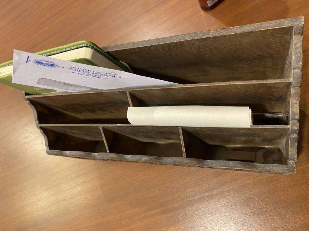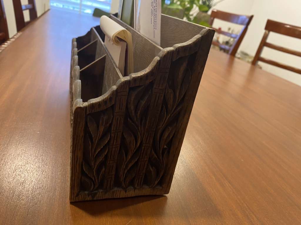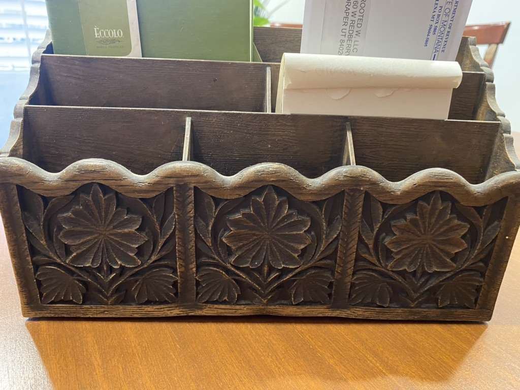 6 slot LERNER vintage carved & wood look desktop/letter organizer.