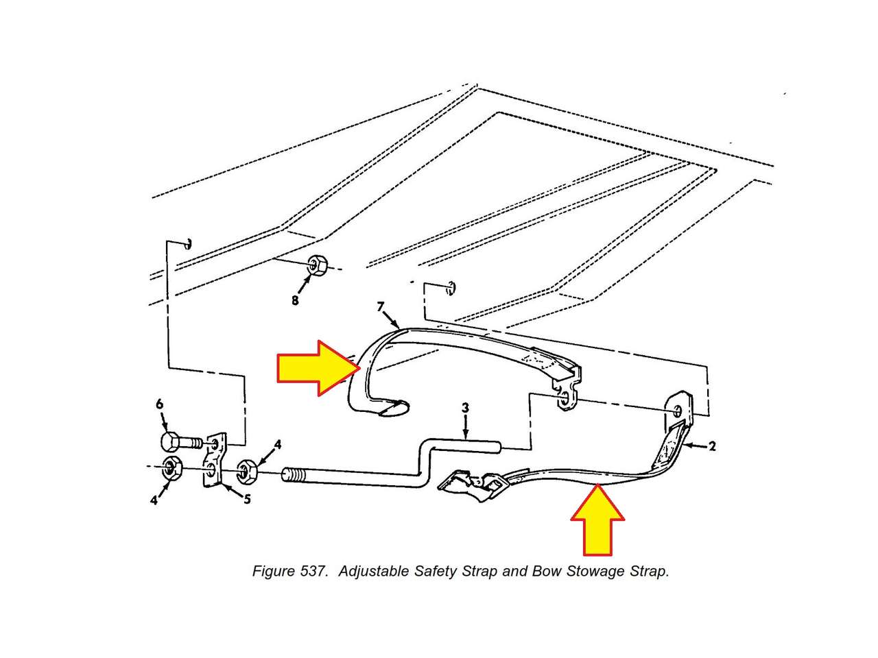 These straps are designed to replace the oft missing, damaged, or sun rotted straps on the bent rod for under-bed bow storage on military cargo trucks such as the M35A2C (deuce and a half with drop-down bed sides), or any of the M39, M809 and M939 series cargo trucks so equipped trucks (and possibly others). Keep your cargo bows securely stowed until needed! These straps are not intended as life safety devices.