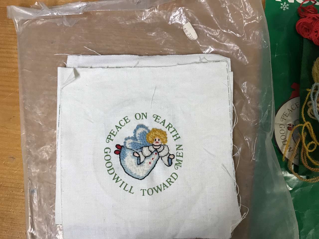 Needle Treasures Country Ornaments. Started, I stitched the angel. Everything is still included in the kit. Ribbon is satin instead of grosgrain ribbon. Buy now and get started on your ornaments for Christmas 2022.
