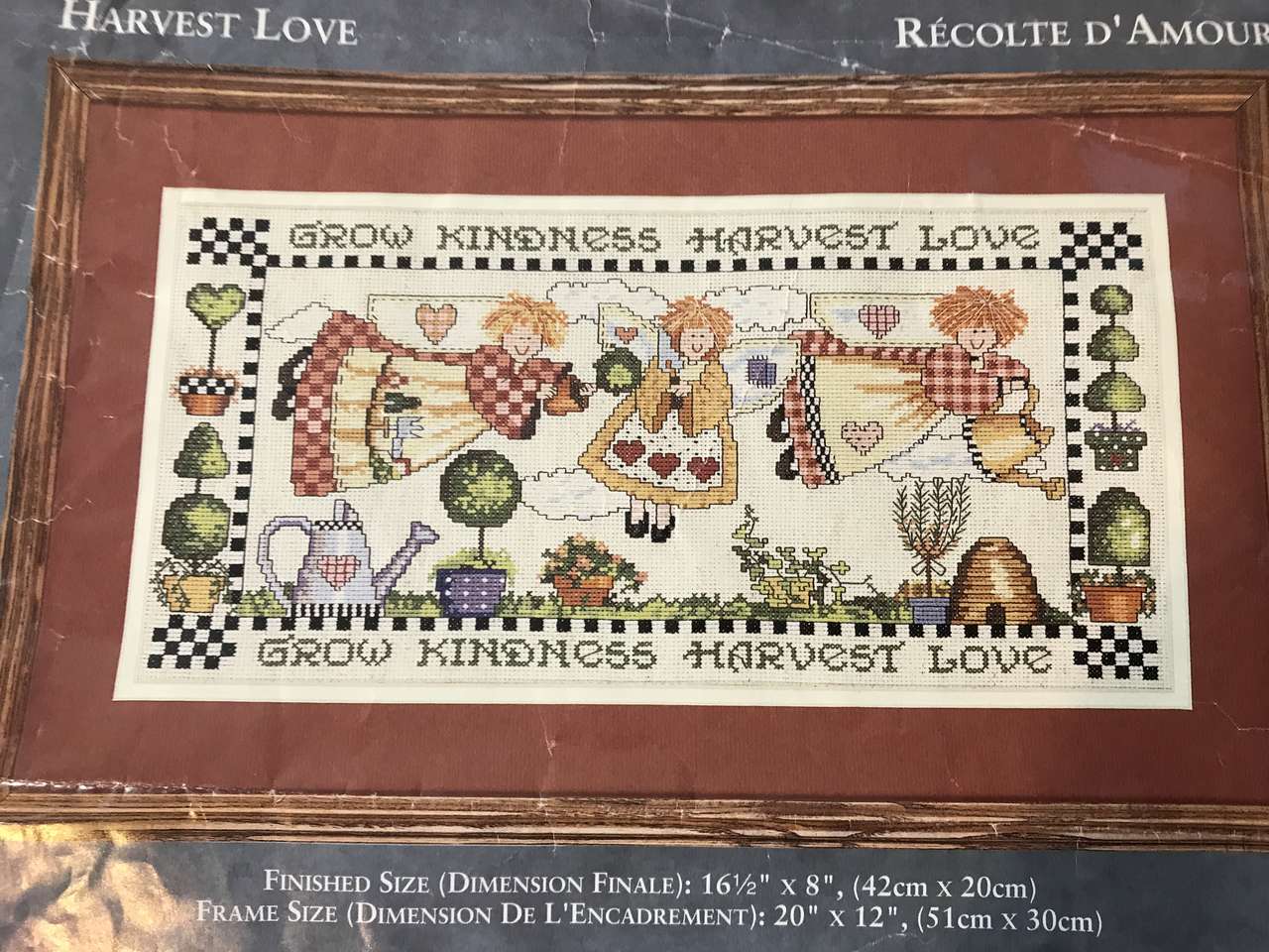 Needle Treasures Borderlines Harvest Love, started, includes thread, tapestry and instructions. Make a great couch pillow.