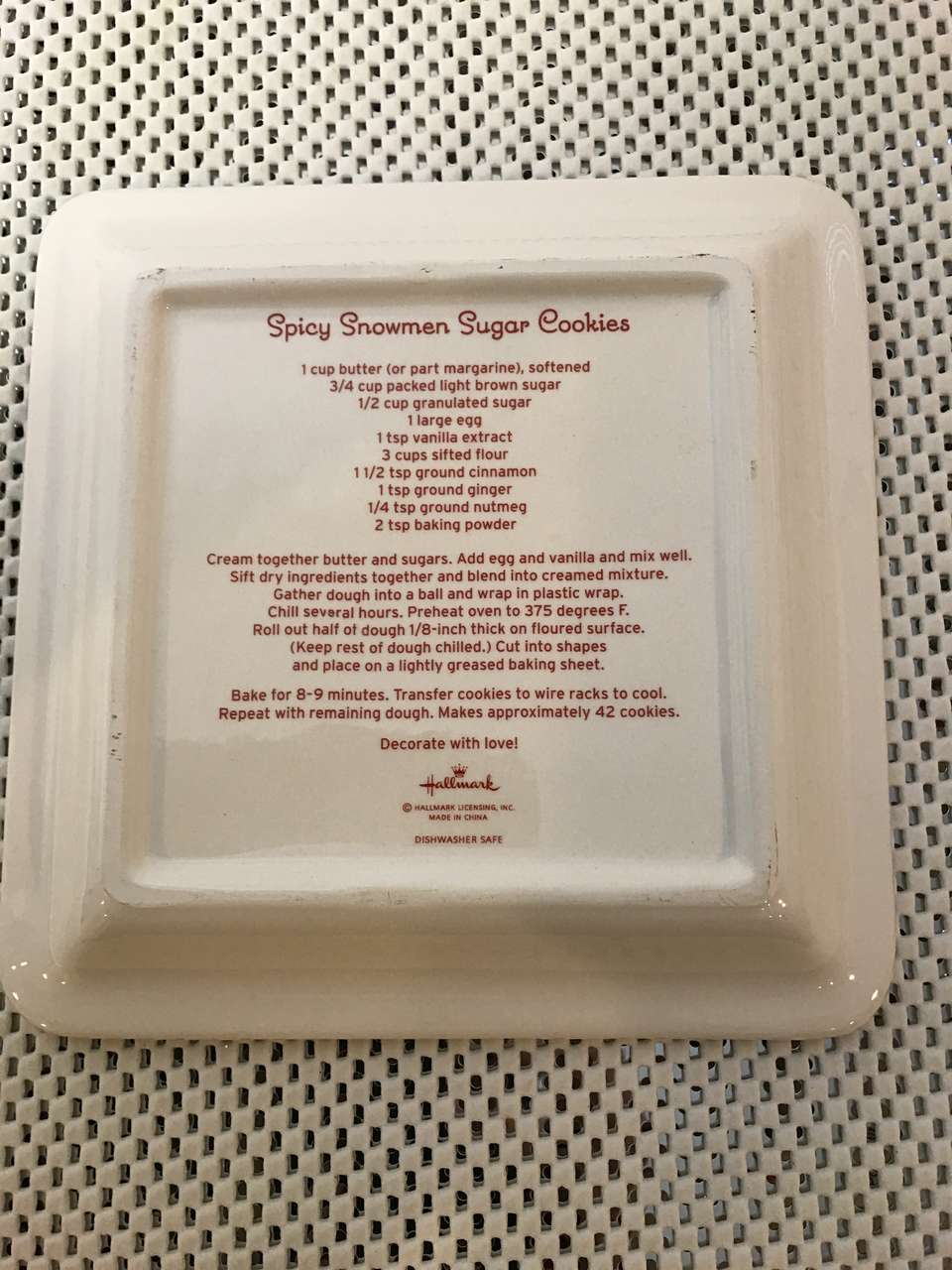 Hallmark Spicy Snowman Sugar Cookie Plate, 7" x 7", New. $5.00