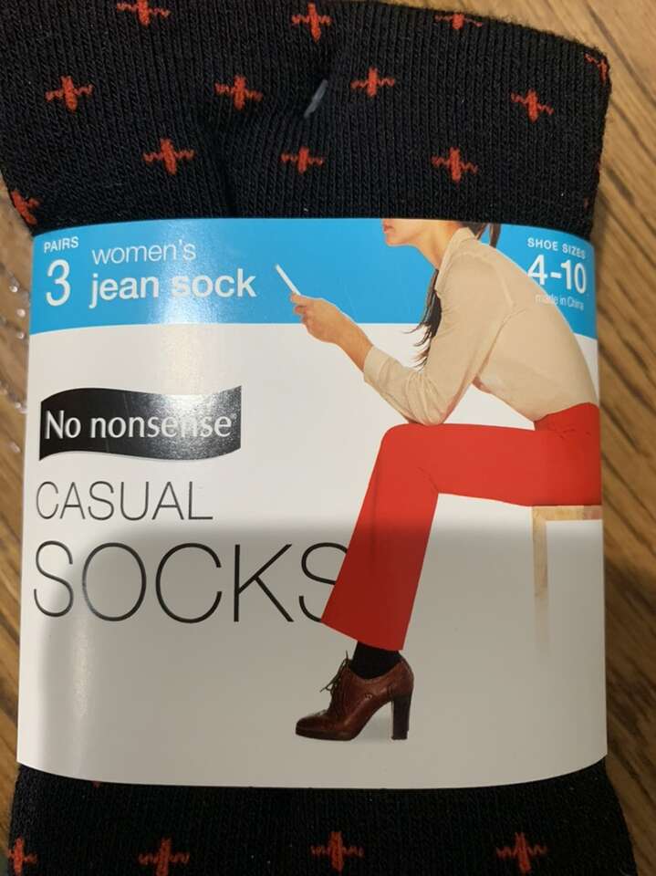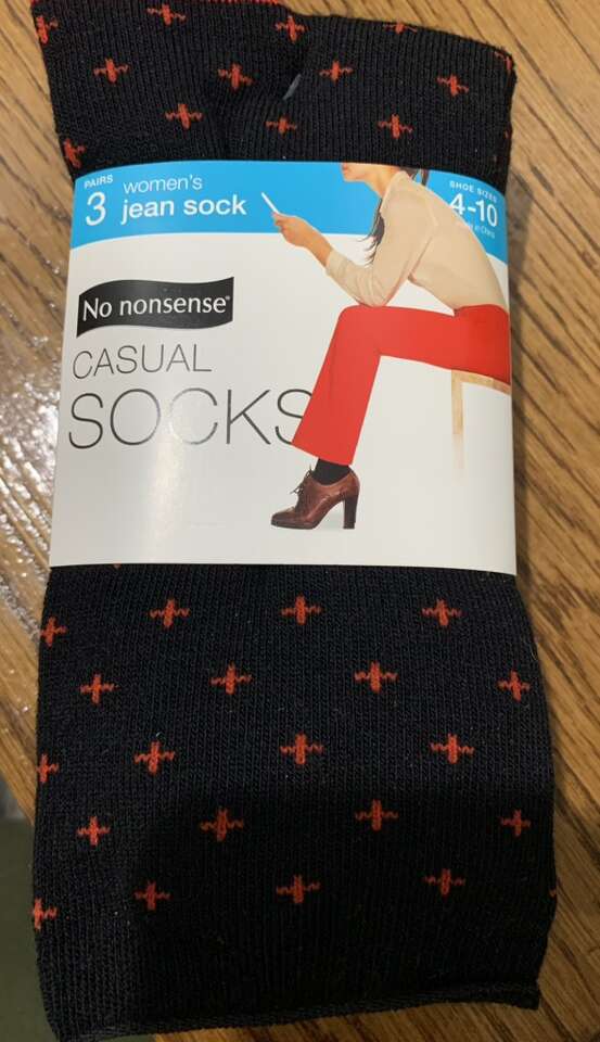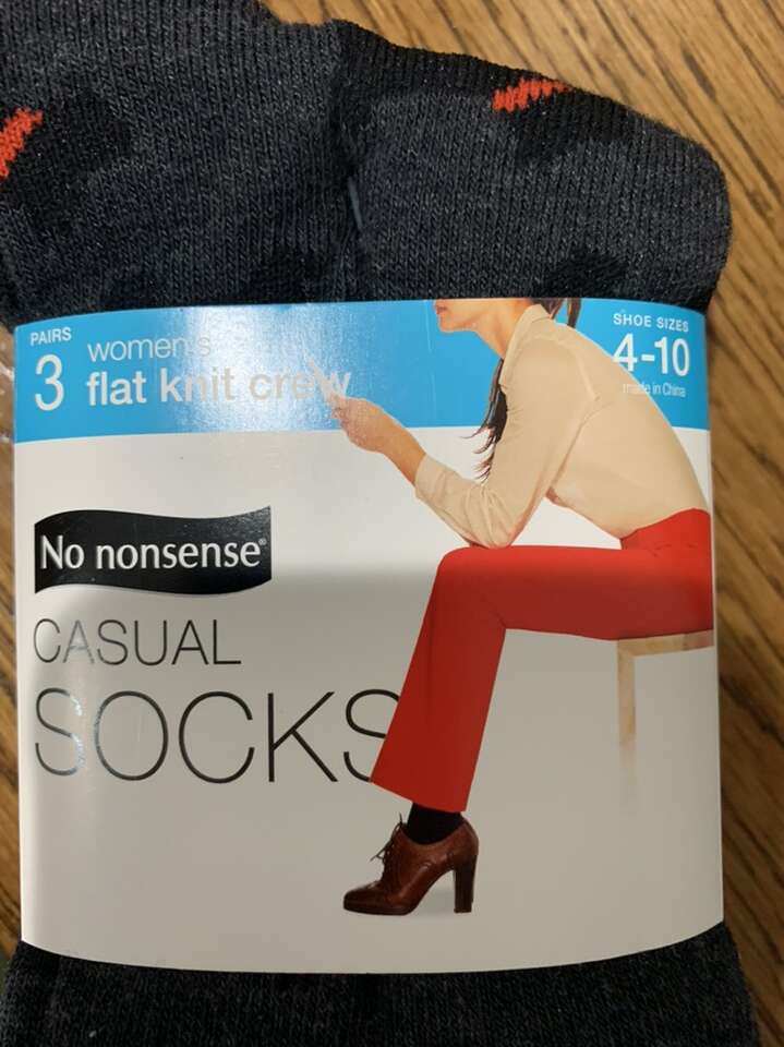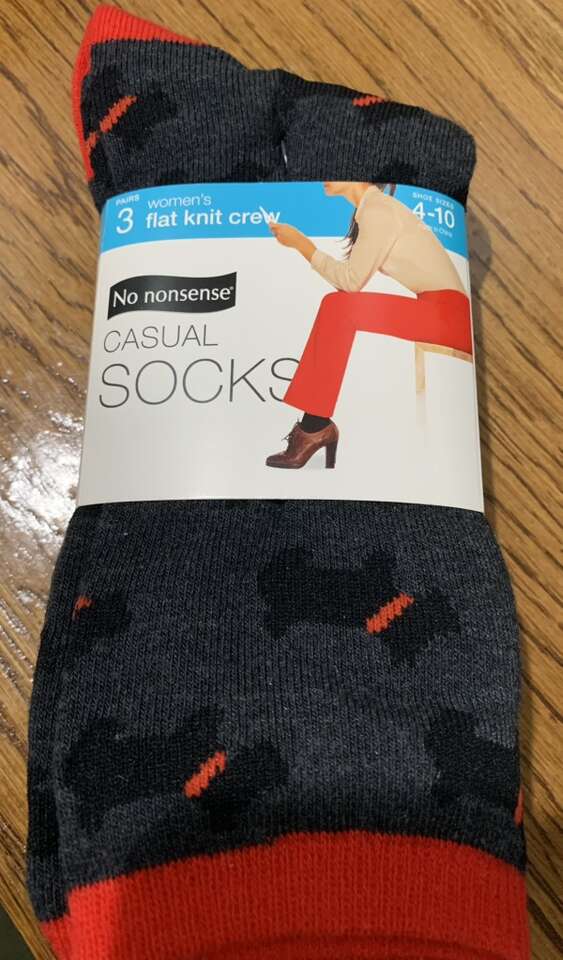 New black 2 pair lightweight crew socks. Soft Lycra for premium fit. Shoe size 5-10. Cash only. $5 New casual socks in the package. Women's jeans socks. Shoe size 4 to 10. There are 3 pairs one wth black Scottie dogs and red trim the other two pair are solid black. $5 Women's troser socks. New six pair package of women's trouser socks. Shoe size 5-10. Lakra spandex hugged your foot for the perfect fit. Dark black. $6
