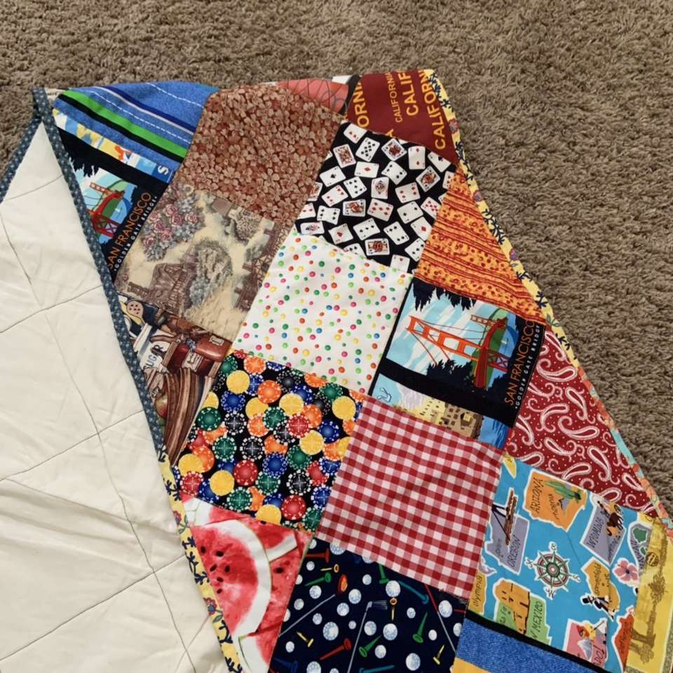 Handmade Patchwork Table Runner Gold Poker Arizona Wyoming Oregon Illinois Georgia Nevada Montana Cars Dogs Watermelon Polka Dot Paisley Gingham Checkered San Francisco Golden Gate Bridge Cards California Madrid Bacon and eggs Pickles Hibiscus flowers And many more