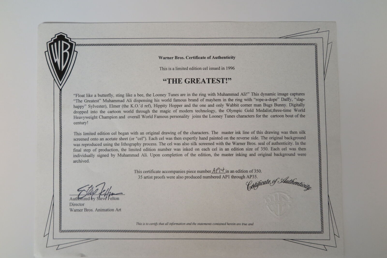 muhammad ali signature limited edition with certificate of authenticity/ap14/35 (1996)