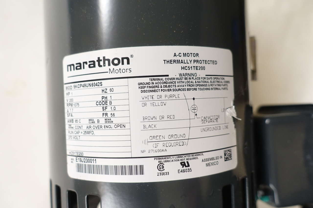 marathon/carrier 1 hp electric fan motor 5KCP49UN6024S/HC51TE200