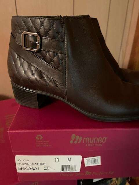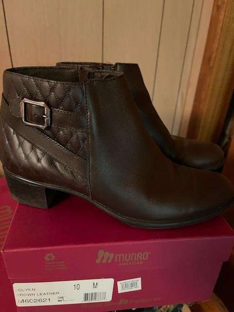 Munro Jolynn Women's brown leather short booties ankle boots shoes size 10 M. Very gently used. Only worn a handful of times. She has this same pain in black. Listing for a neighbor. Check out my other ads. She is having me list a lot of her high end shoes, bags and clothes.