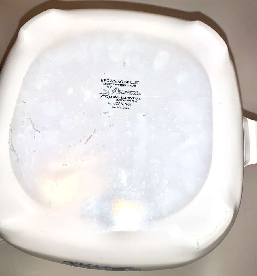 Rare Corning Ware Covered Browning Skillet. No chips, cracks or any flaws. Made exclusively for Amana Radarange microwave buyers. Great for microwave, oven, fridge and dishwasher. Message if you’re interested thanks.