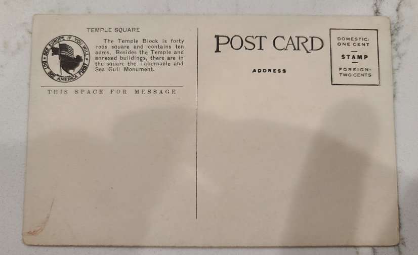 But it's not just a collectible - this Temple Square post card is also a piece of cultural and religious significance. Temple Square is a sacred and historic site for the Church of Jesus Christ of Latter-day Saints, and our post card is a way to honor and remember the significance of this place.