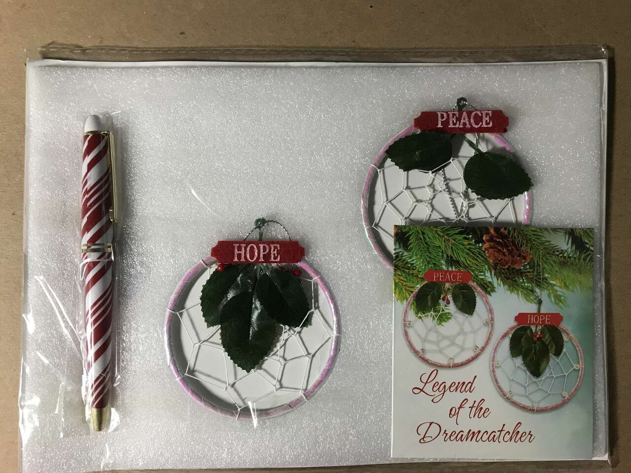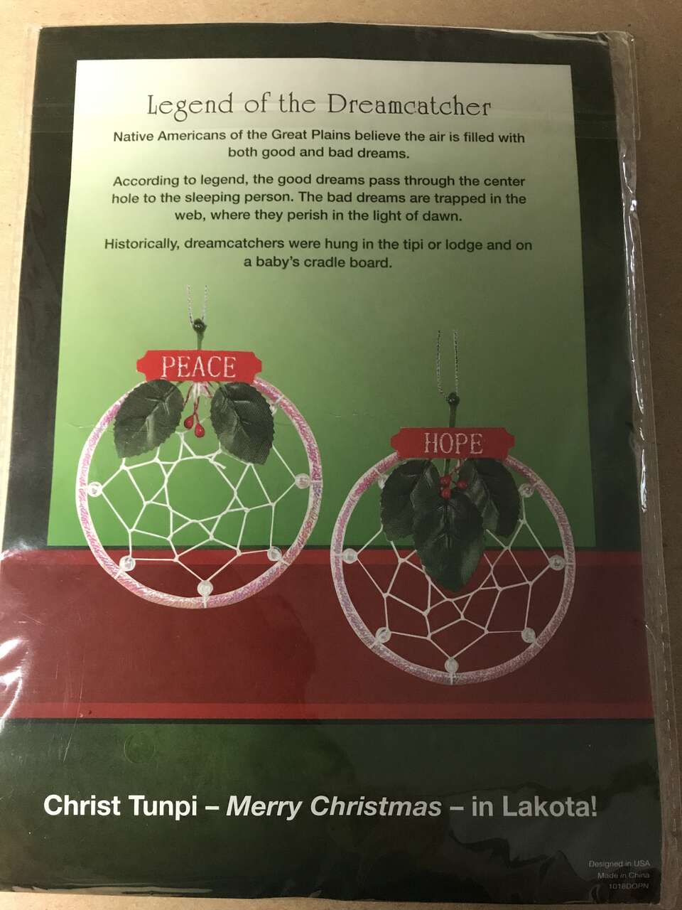 Legend of the Dreamcatcher Chimes 7”x 6”, 2 Count, NIP. Size does not include 3" hanger. The 3rd dreamcatcher is navy blue and is not a chime. Pictures 5 and 6 is Christ Tunpi - Merry Christmas - in Lakota! set of 2 ornaments.