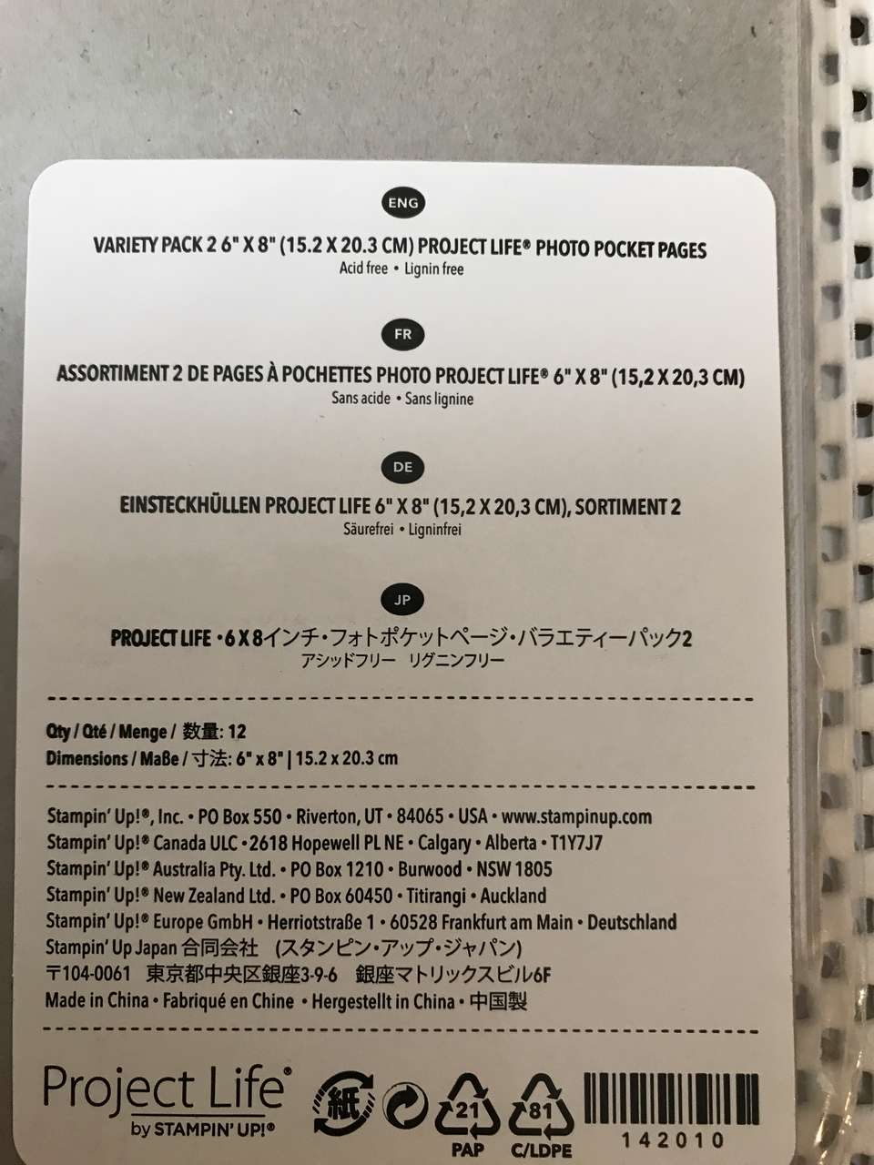 Stampin Up Variety Pack 2 6”x8” Project Life Photo Pocket Pages Protectors, NIP. I have 4 packages available. $10 each