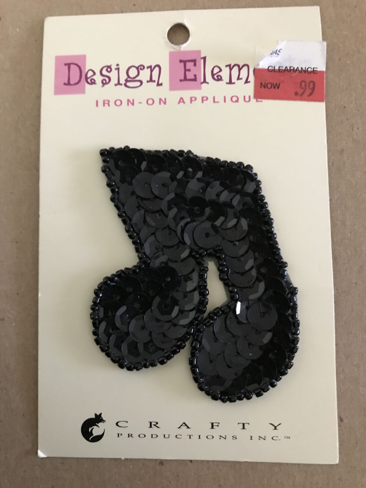 Design Elements Iron-On Black Sequined and Beads 1/8 Notes. $2.50