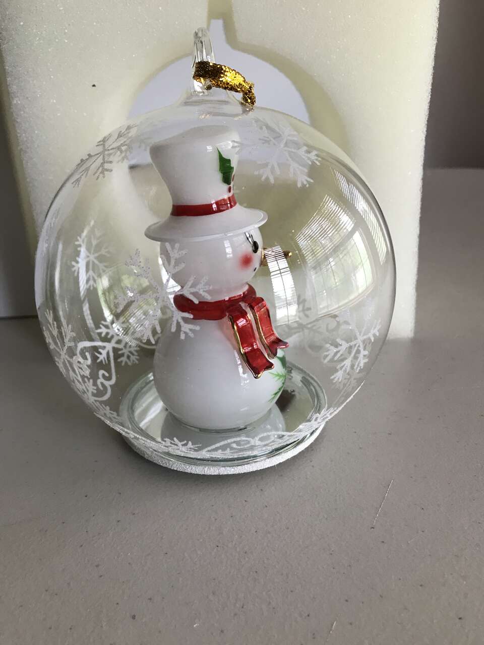Sorelle Snowman Globe 520-246B Ornament. It has a switch on bottom. When turned on the globe continues to change colors. Comes in original box with foam insert. New,