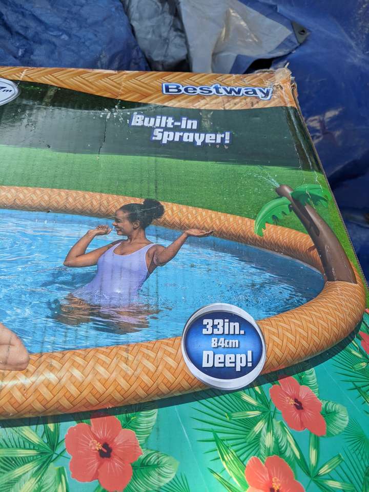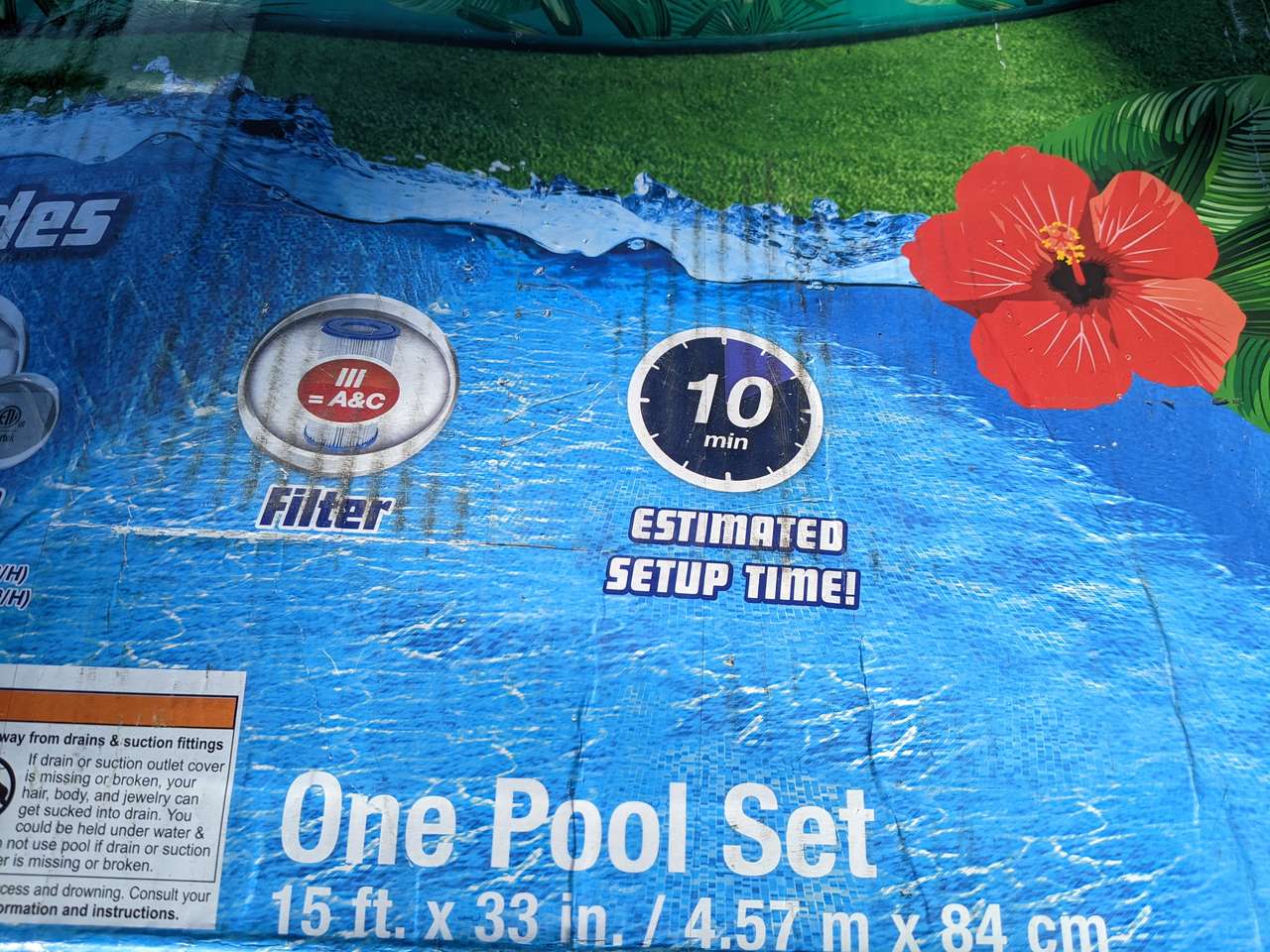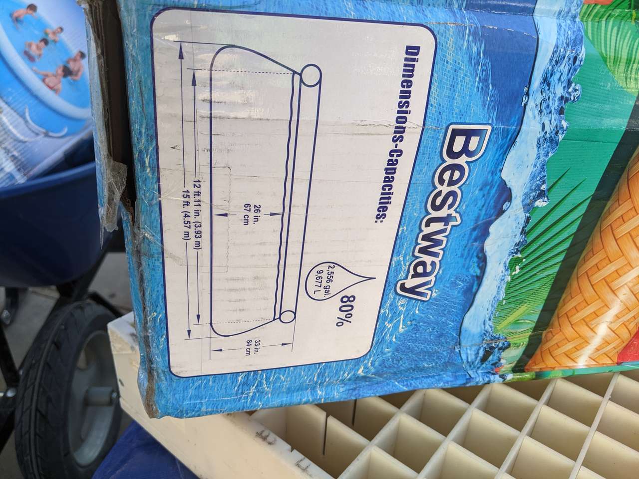 15-FOOT SWIMMING POOL: Splash away the day with the whole family in this 15-foot round inflatable pool