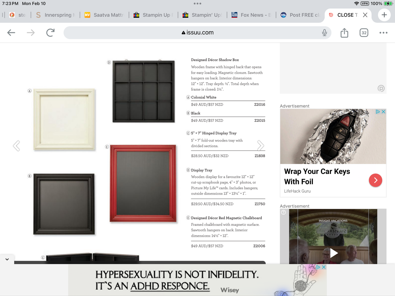 Close To My Heart Shadowbox Hinged, Colonial White, 15”x15” is the full outside dimensions. It is new and in bubble wrap. No longer available. The 3rd and 4th pictures are of a used one I have. If you want it price would be less. Last picture shows the item in the Close To My Heart catalog. It hold a 12" x 12" image and is 1/2" deep.