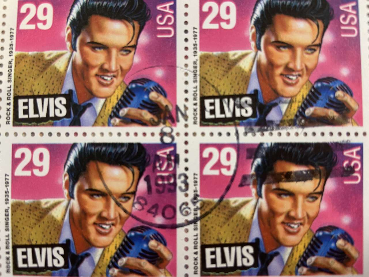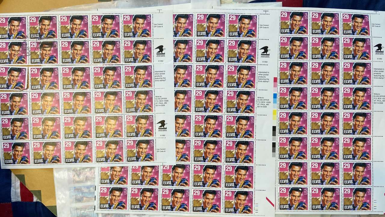 READ ENTIRE AD FOR ALL PRICES - 110 - ELVIS - U.S. Postage Stamps | Face Value .29 Cents | 1993 | 2-Full Sheets, 1Half Sheet / and 1 postmarked with release date of Jan 8, 1993. sheet of 10.|