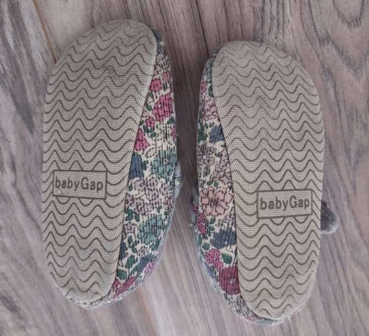 These are cute Baby Gap shoes. It's a floral corduroy with Velcro on the straps for easy on and off. Size is marked 12-18 month, which is actually a size 4. My daughter wore them when she started walking, so they were mostly worn indoors. There is a little wear on the bottom, see photos.