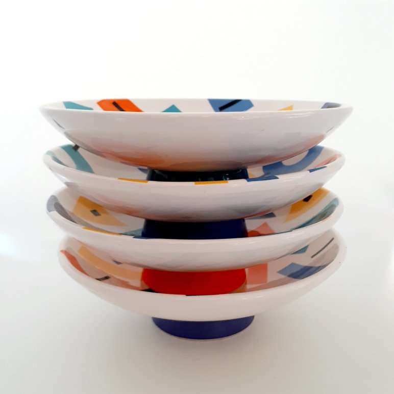 • These Set Of 4 Vintage Postmod Mega Graphic Dessert Bowls Are So 90’s And Remind Me Of The Tv Show SAVED BY THE BELL 🤔️