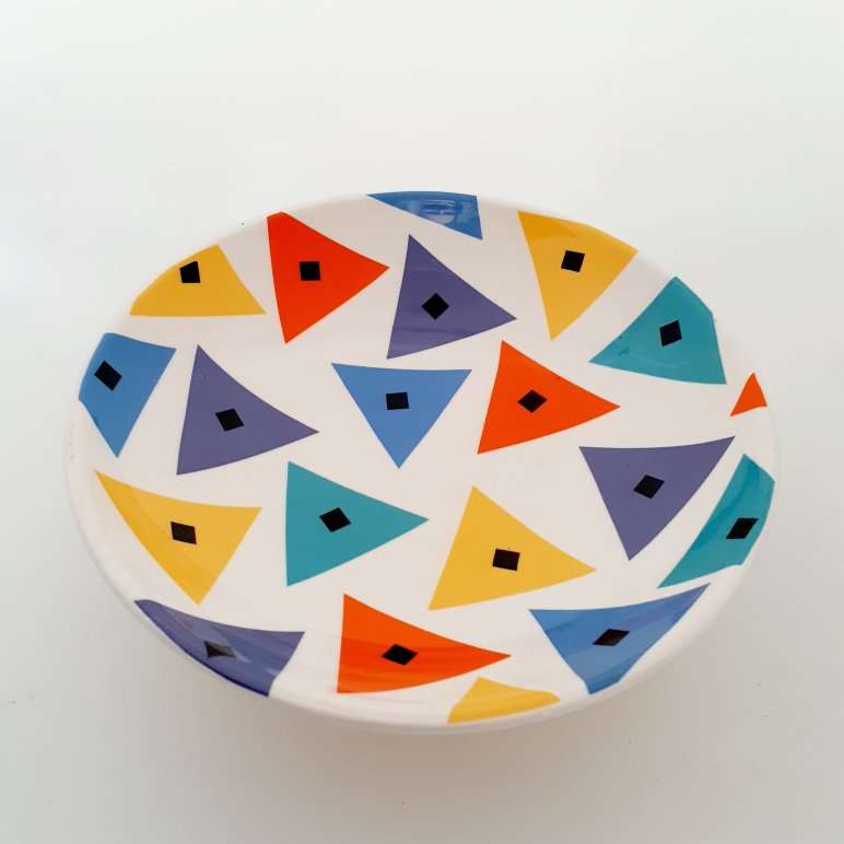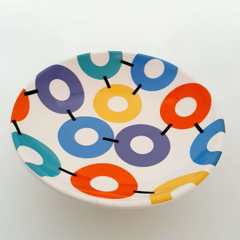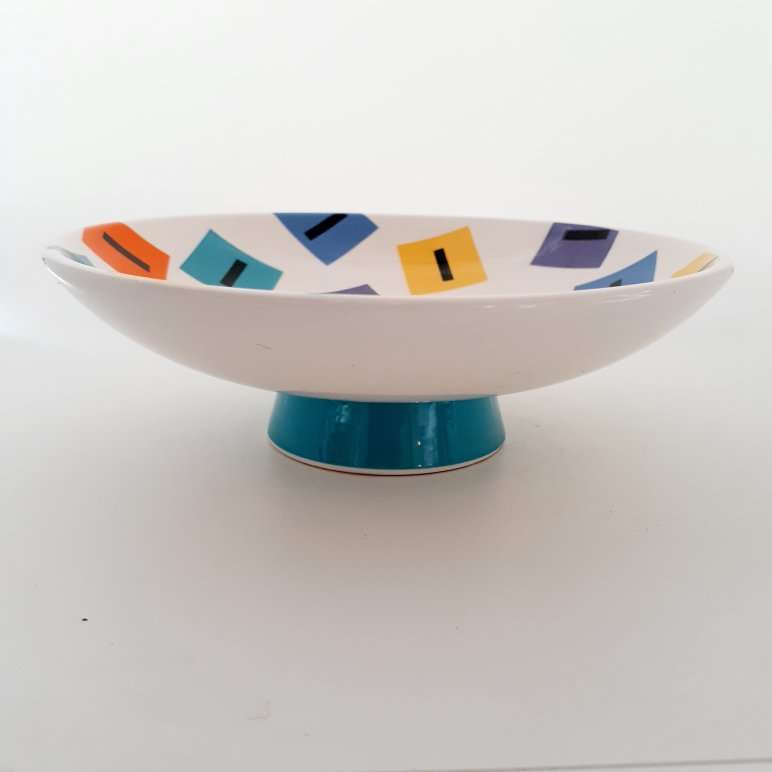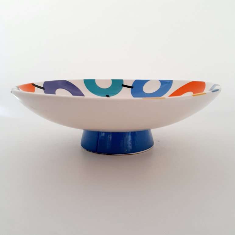 • Features White Ceramic Footed Bowl With Screen Printed Mega Graphic Bowl Interior And Contrasting Base