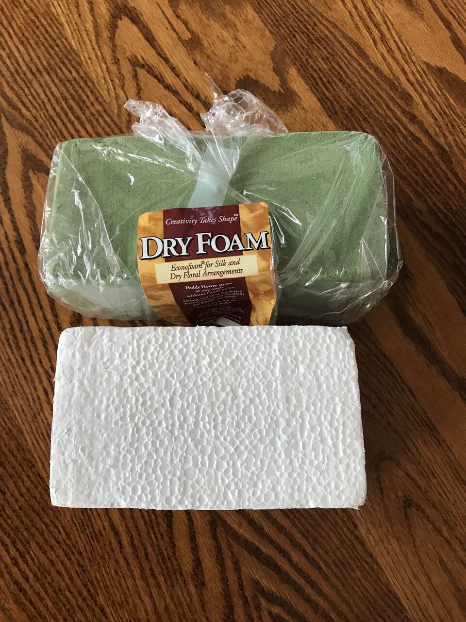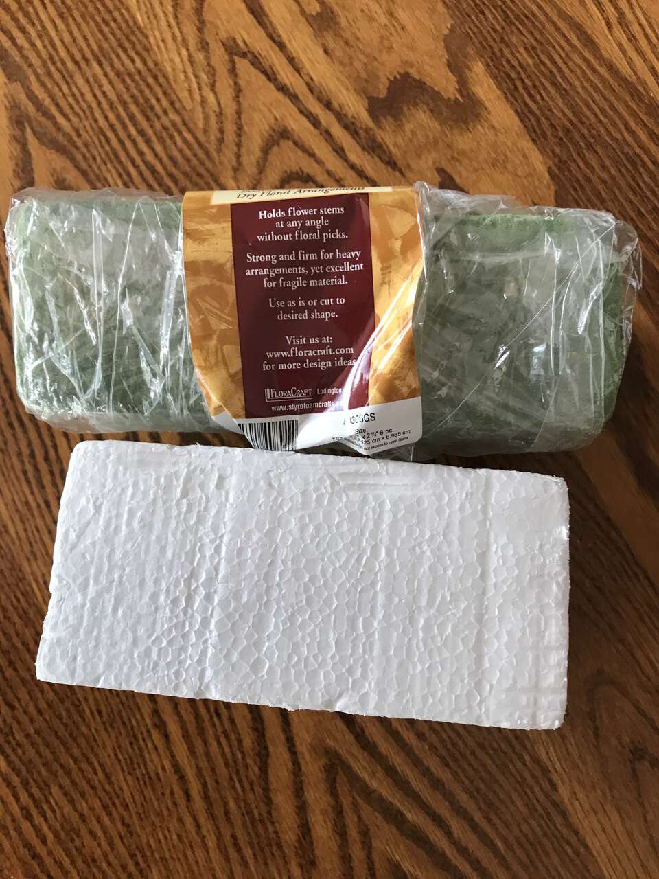 Dry Floral Foam Wet Blocks 5 Rectangular Green Blocks 3 x 3 15/16 x 7 7/8 for floral arrangements, New and 1 white Styrofoam Rectangle Block a little smaller than the green blocks, and 55 - 8" stakes, $10.00. Make offer.