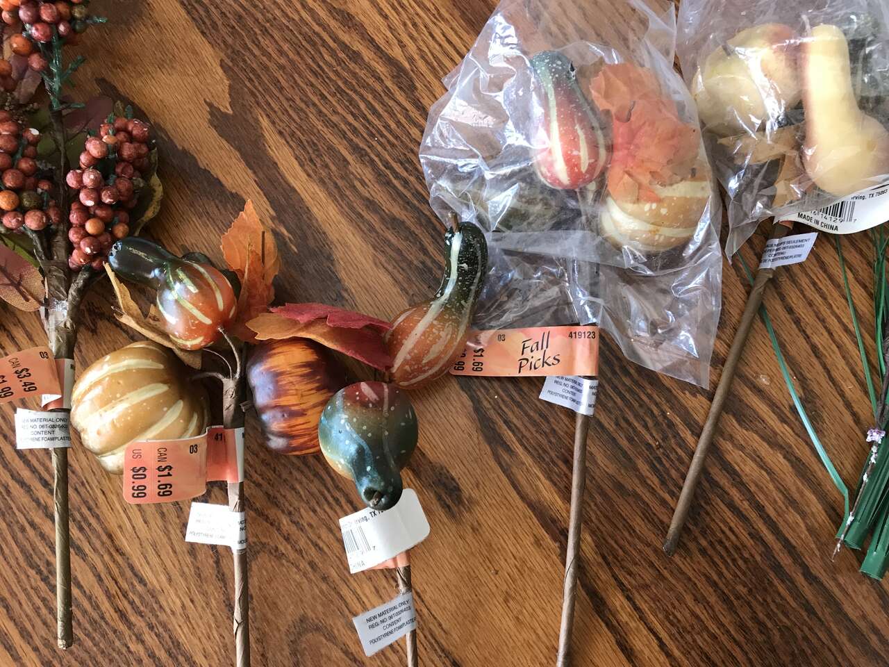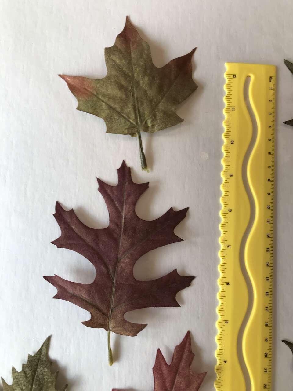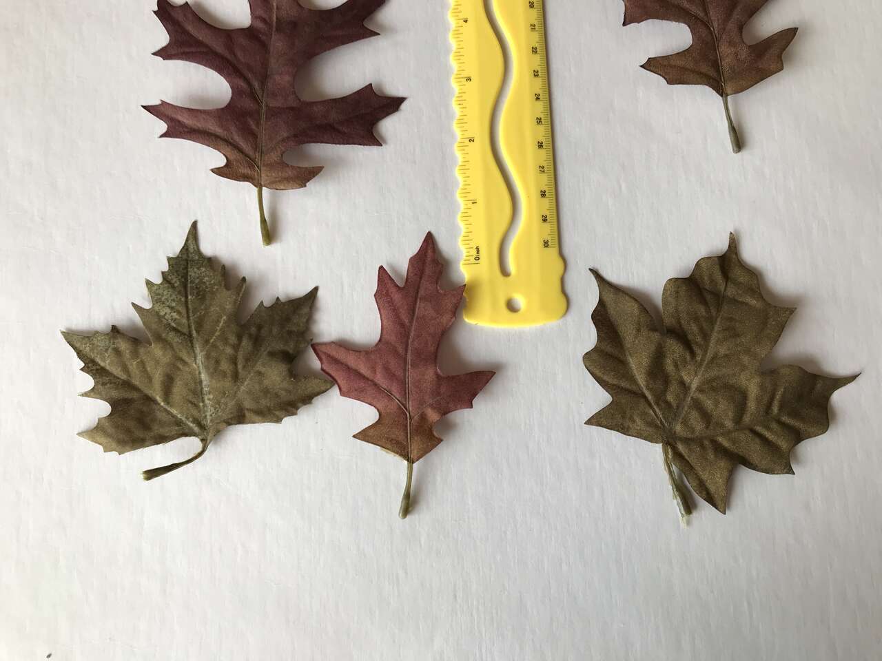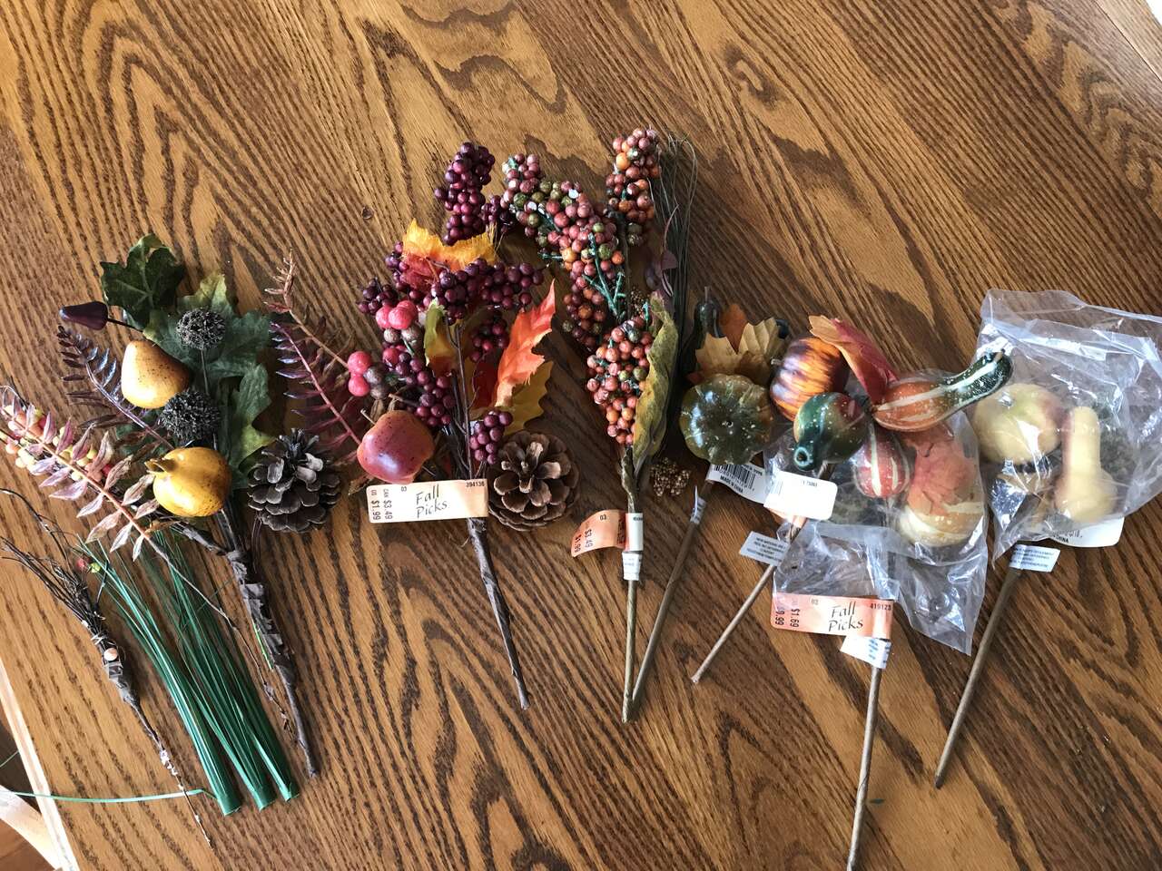 Fall Picks 7 total, dryed green sprigs and 1 - 13" heavy wire metal wreath ring, and Lot of 50 Oak and Maple Silk Leaves, $10.00