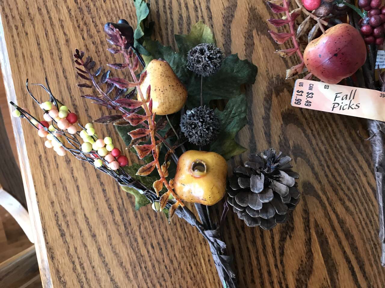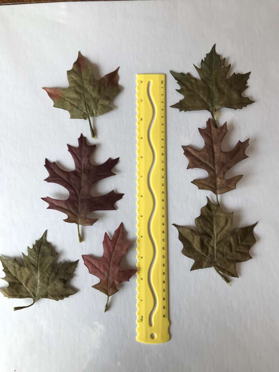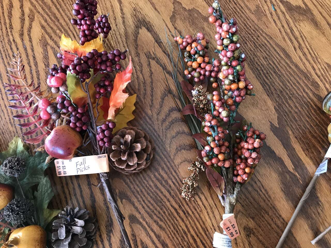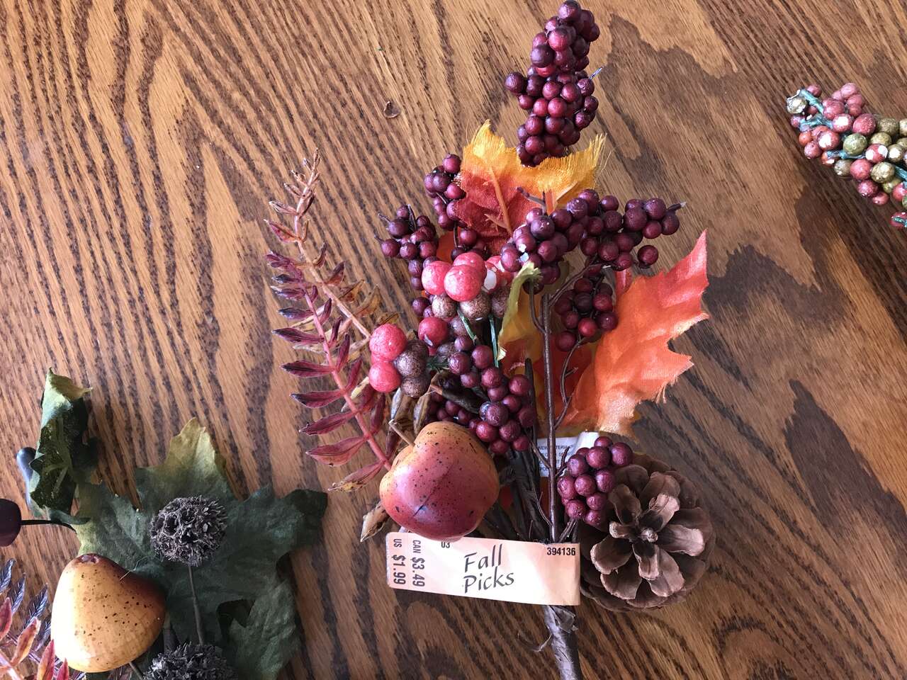 Fall Picks 7 total, dryed green sprigs and 1 - 13" heavy wire metal wreath ring, and Lot of 50 Oak and Maple Silk Leaves, $10.00