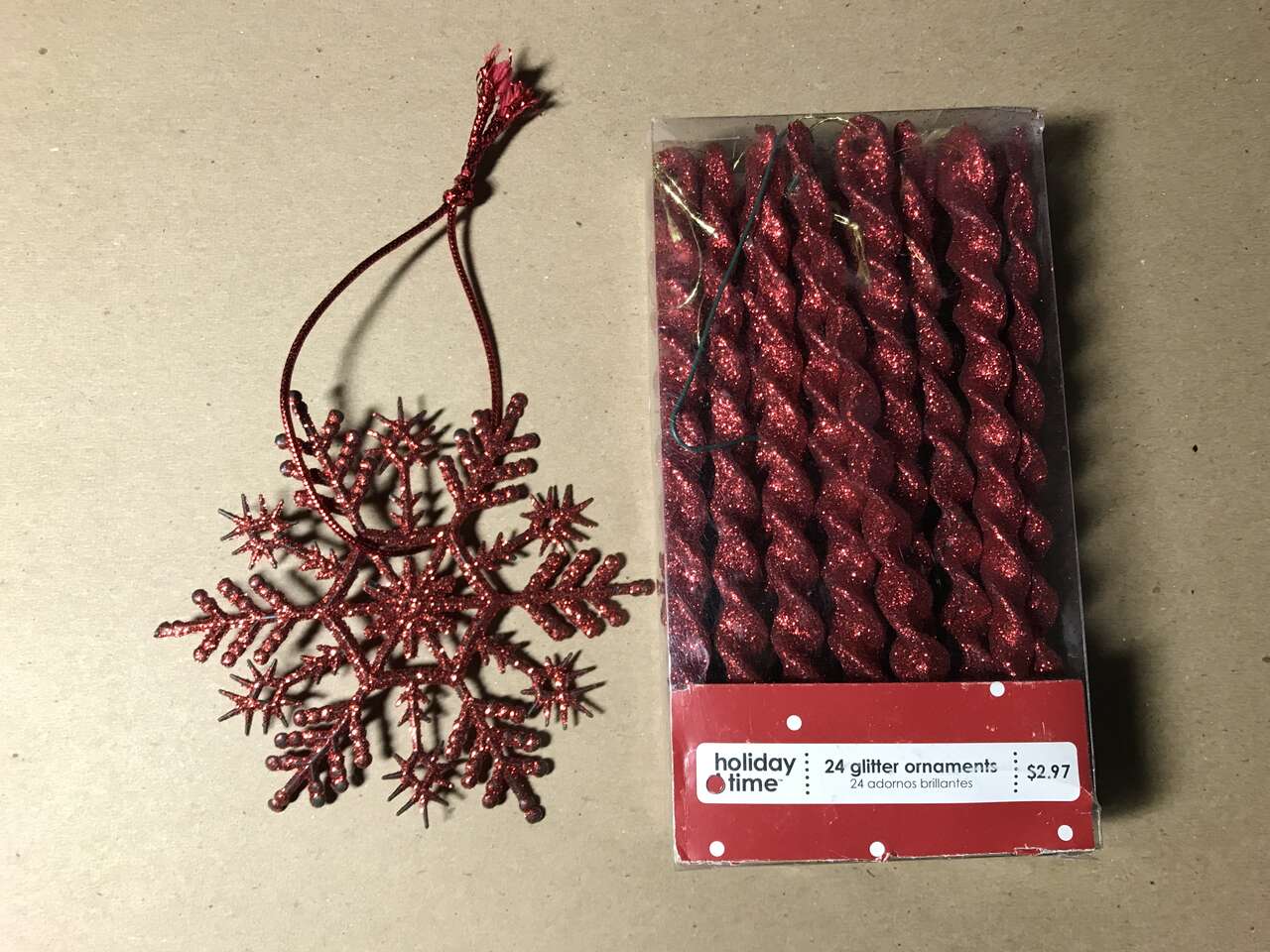 Icicle Tree Ornaments 24 Red Glittered, and 1 snowflake, $5.00
