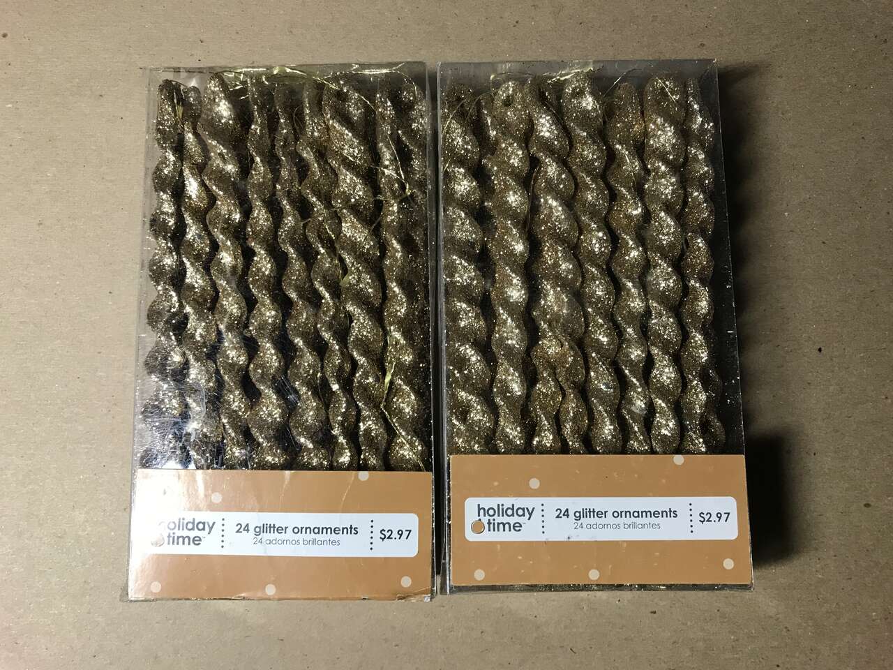 Icicle Tree Ornaments 24 Gold Glittered, 2 Packages, $5.00 each