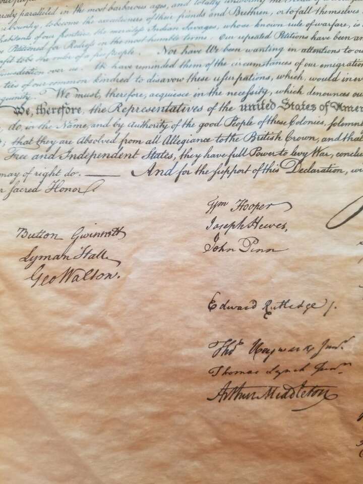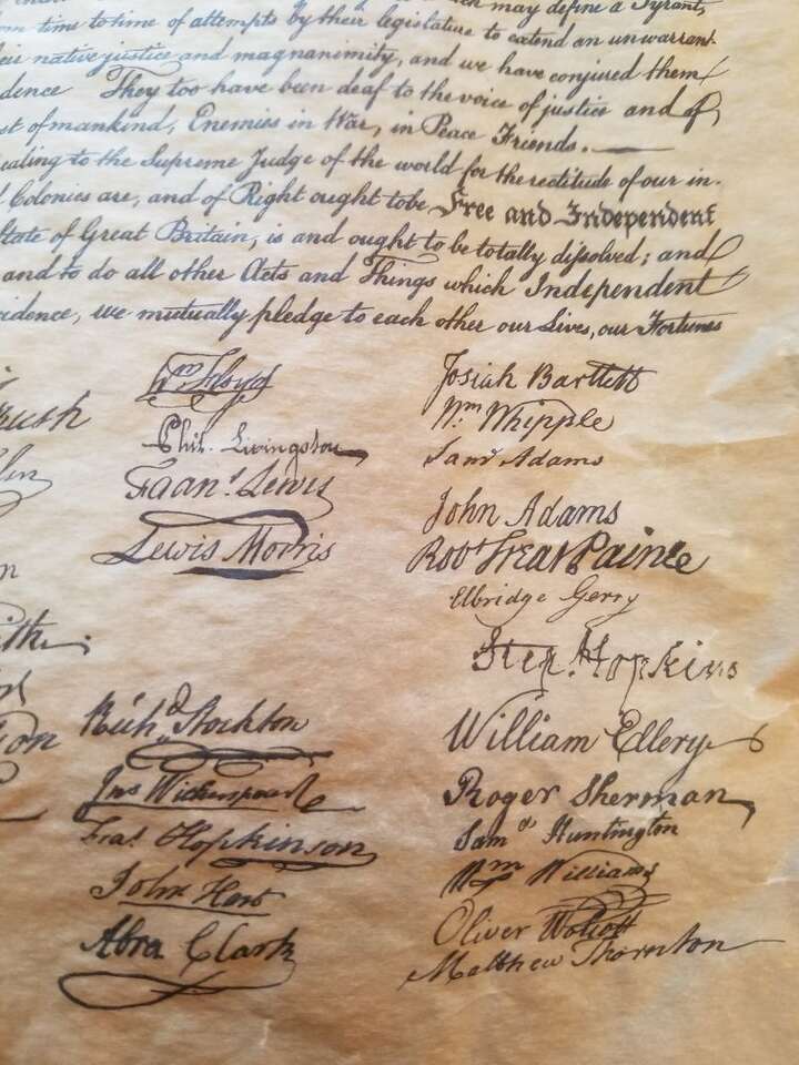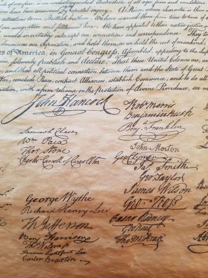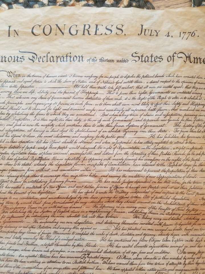 Very old document The unanimous Declaration of the thirteen United States of America.