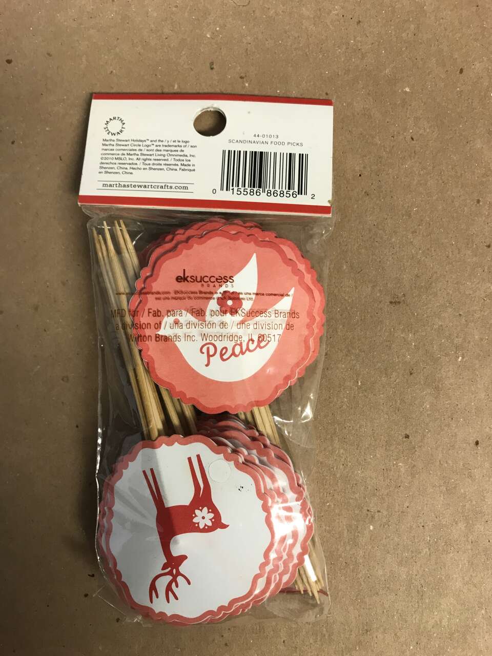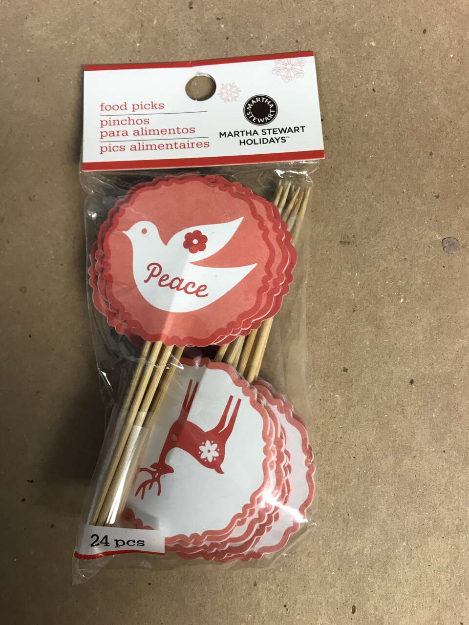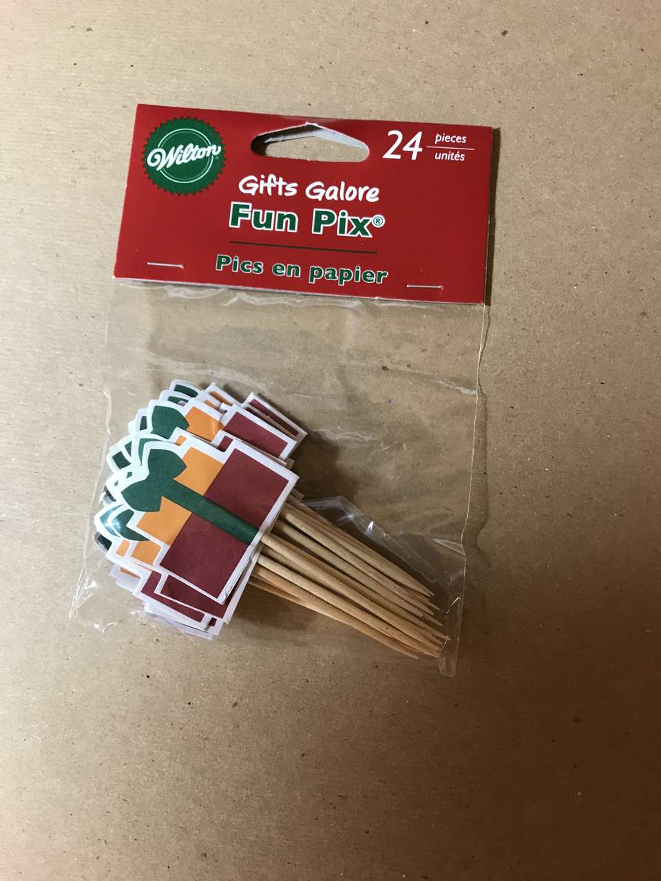 Lot of 9 items, Wilton Paper Cupcake Baking Cups, 2 packages of Wilton 3 1/8” Wood Picks Tree and Presents, and Martha Stewarts Holidays Food Picks 24 pcs, and 3 packages of 6” Party Picks and 1 package Petit-four Cups Christmas Theme, and Holiday Inspirations Snowman Cupcake Stand Heavy Chipboard 6 Count, and Martha Stewarts Holidays Food Picks 24 pcs, New. $10.00