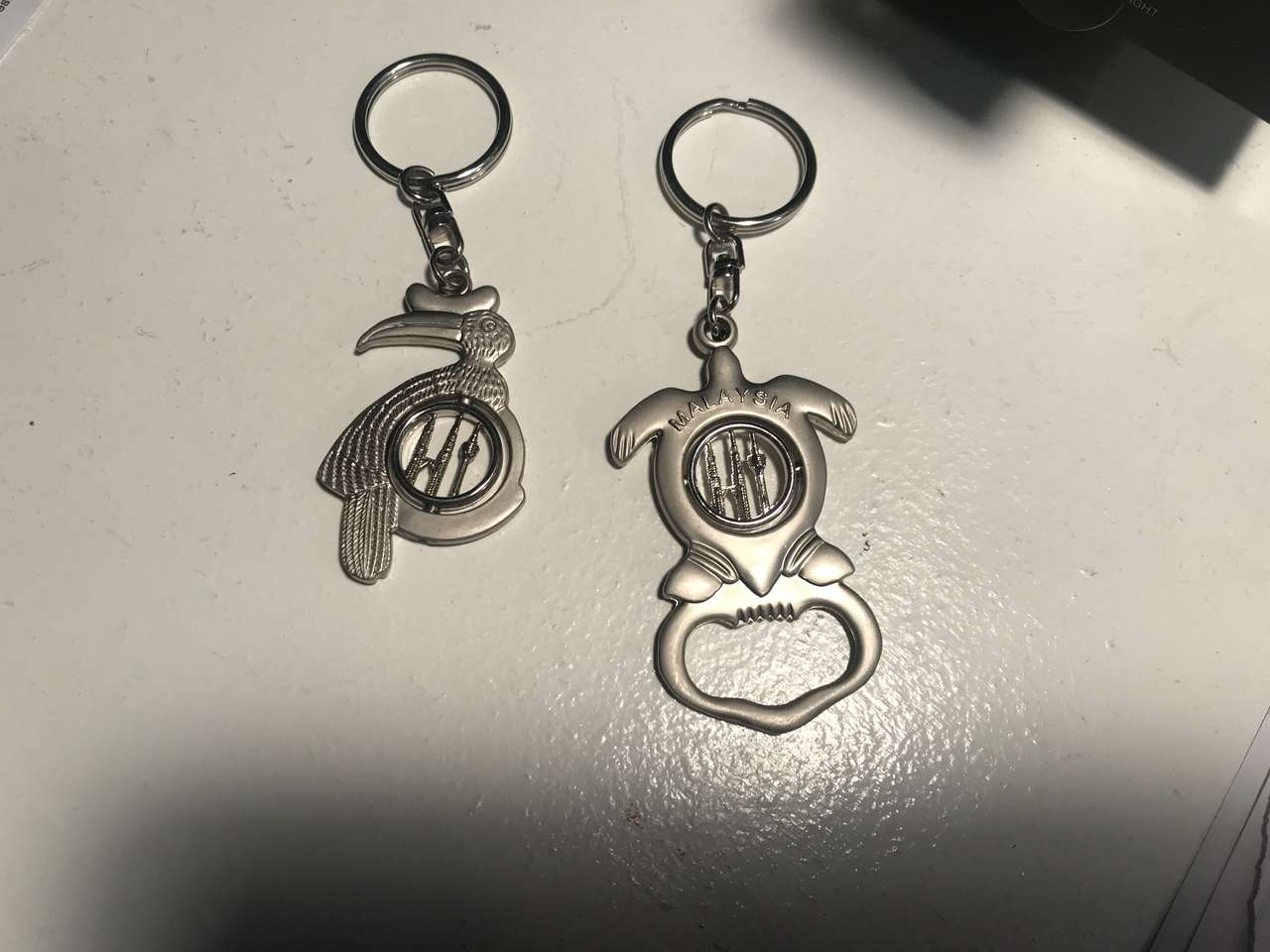 VenmoKUALA LUMPUR, MALAYSIA KEY CHAINS 3 NEW with ROTATING PETRONAS TOWERS IN CENTERS. One is a Rhinoceros Hornbill Bird $5; and the other is a Sea Turtle with a Bottle Opener $6. The center are replicas of the tri-towers of Malaysia.Third one are the Towers inside an Apple. $4. In Perfect Condition. Never Used. Brought back from Malaysia in 2010. Unique gift idea. BUY ALL 3 for $12. In Sandy. 801-201-5350.