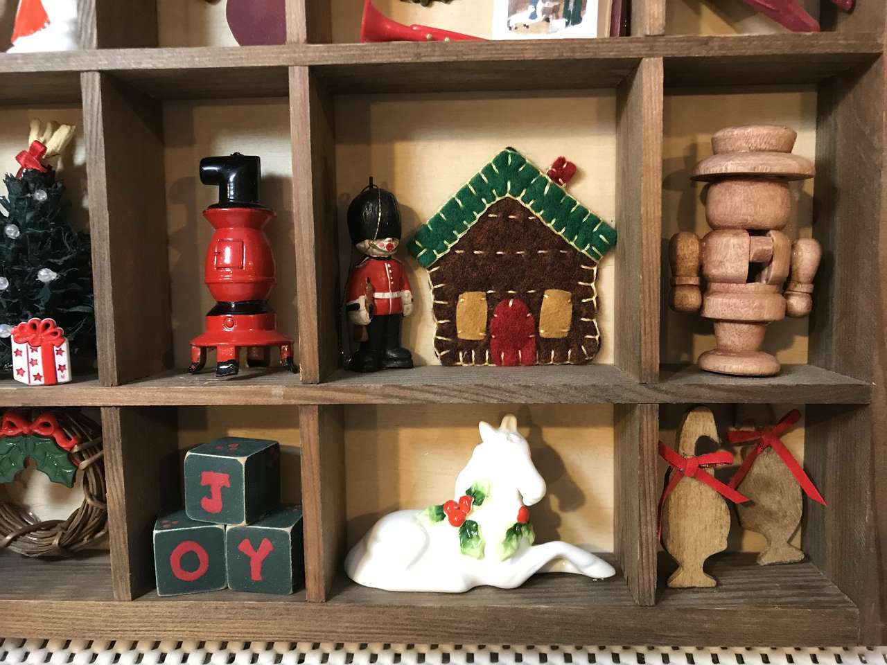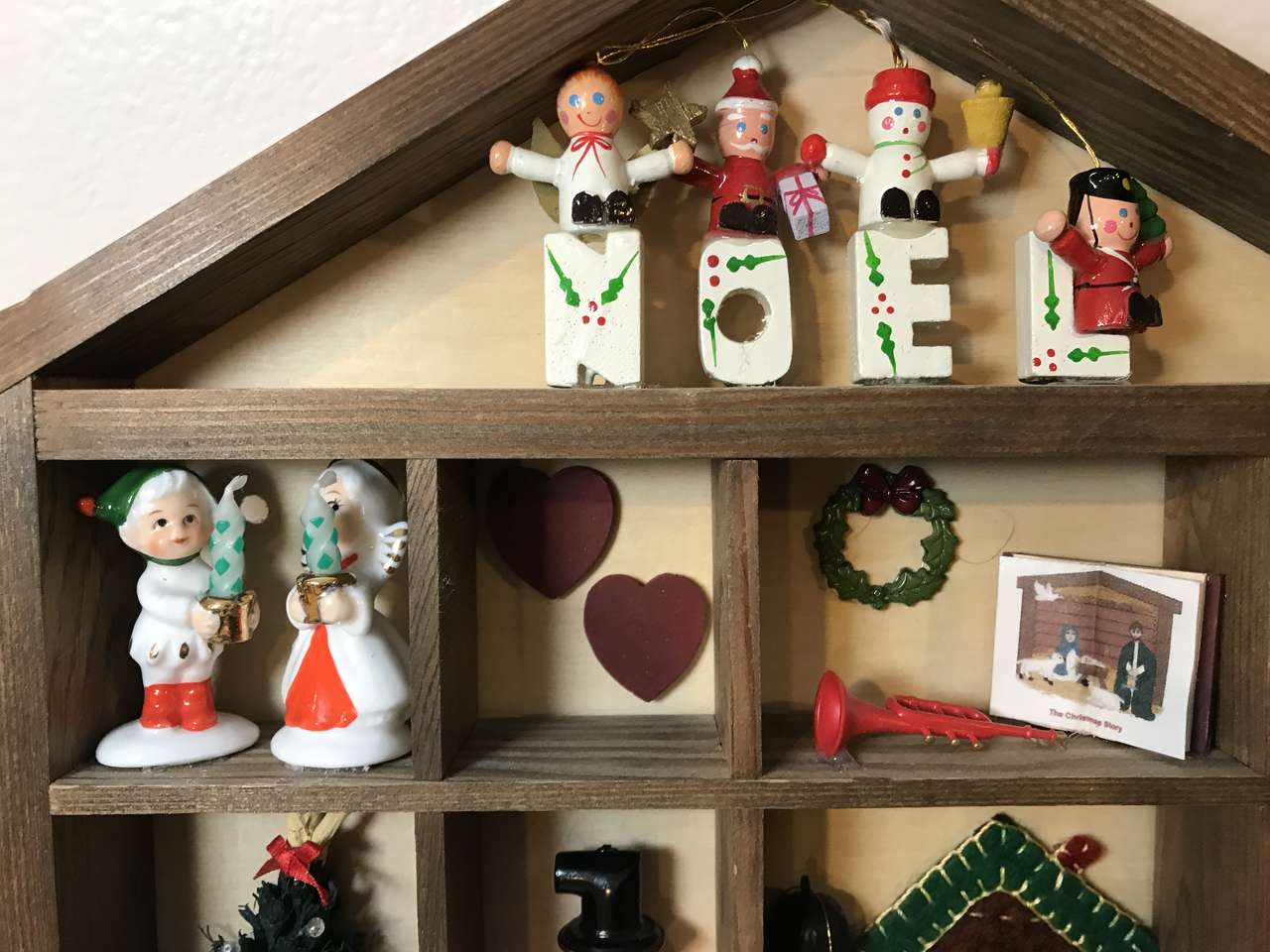 Christmas Shadow Box House Shape Shelf, Large 14"x12" Wooden Wall Decoration, Storage Display Shelf Unit Pre Decorated, New $75.00