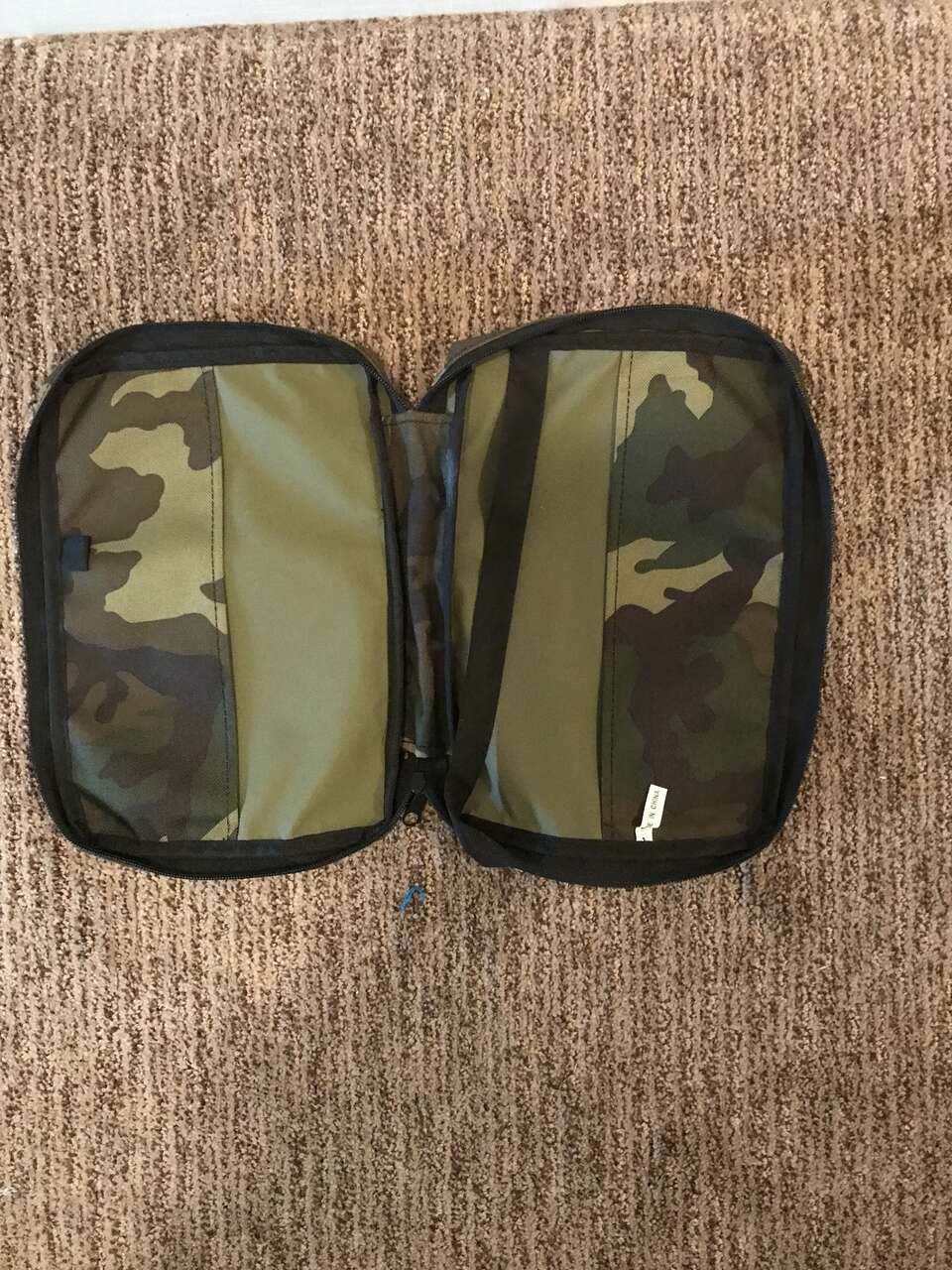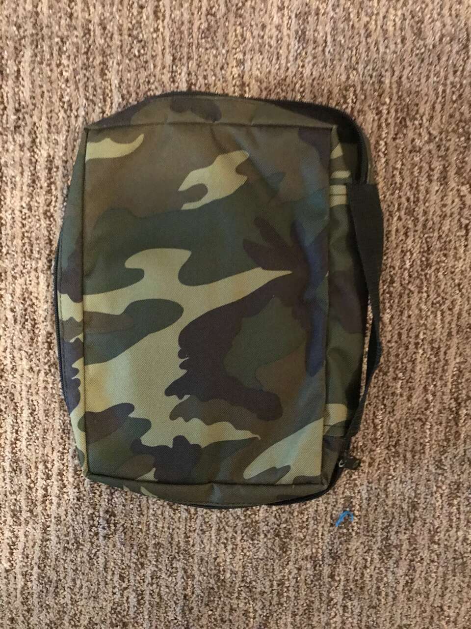 This book holder is BRAND new and never been used. The dimensions are 10 x 7. It has a handle the zipper holds the book inside. It is in excellent condition.