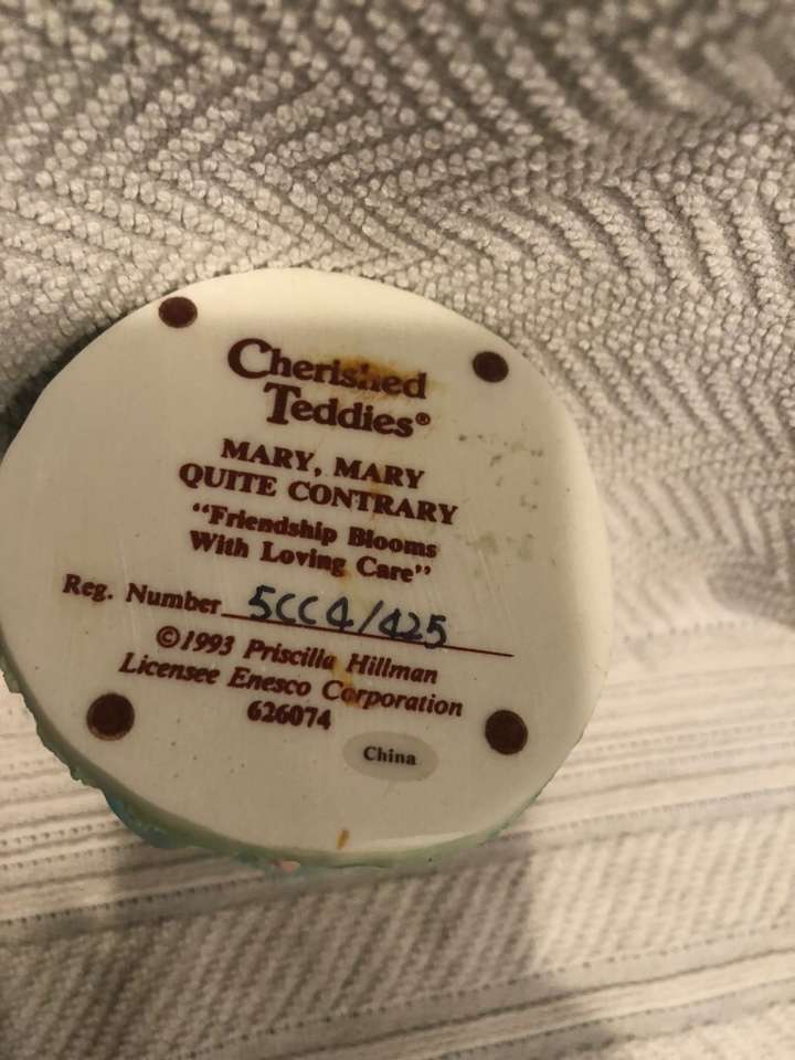 Cherished Teddies Mary, Mary Quite Contrary 626074. “Friendship Blooms With Loving Care” 1993 Priscilla Hillman No box. OBO.