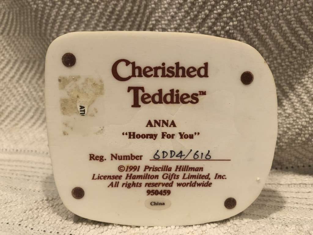 Cherished Teddies 950459 Anna Hooray for You Bear with Honey Figurine 1991 No box. OBO.