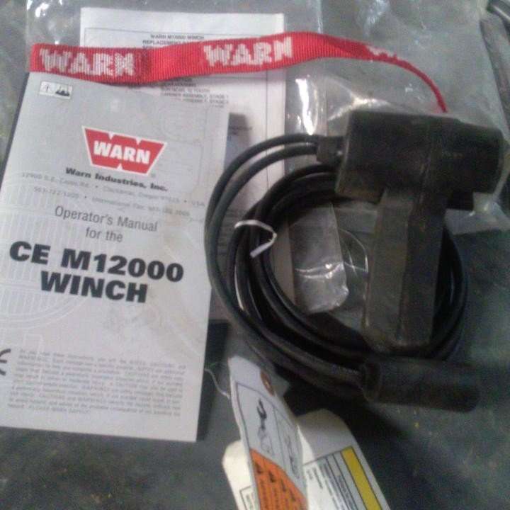 [ ] 12000 lb Warn Winch. [ ] Fair leads, [ ] remote control, [ ] canvas winch cover, [ ] Warn transformer carrier tray with mounting hardware and tow hooks.