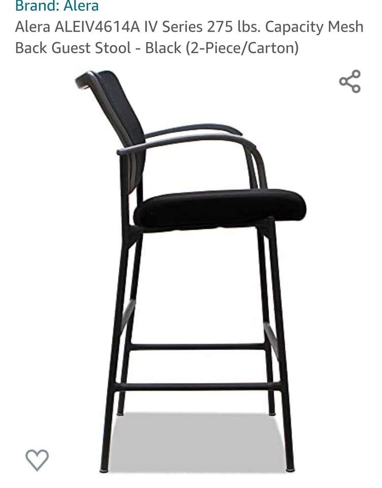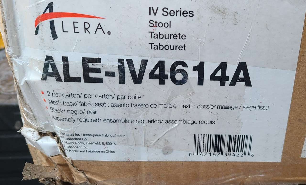 Brand New still in the box ALERA CHAIRS 2 in the box. Alera IV Series Guest Stool, 19 5/8 x 19 1/4 x 19 1/4, 275 lbs, Black, 2/CT Seat/Back Color: Black Arms Included: Yes Seat Depth Maximum: 19 1/4" Overall Width Maximum: 25 3/8" Seat Height Maximum: 19 1/4" Seat Width Maximum: 19 5/8" Back Material: