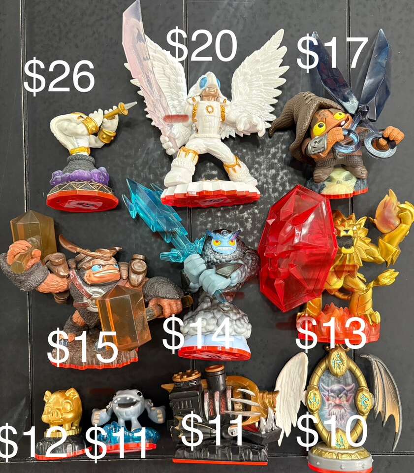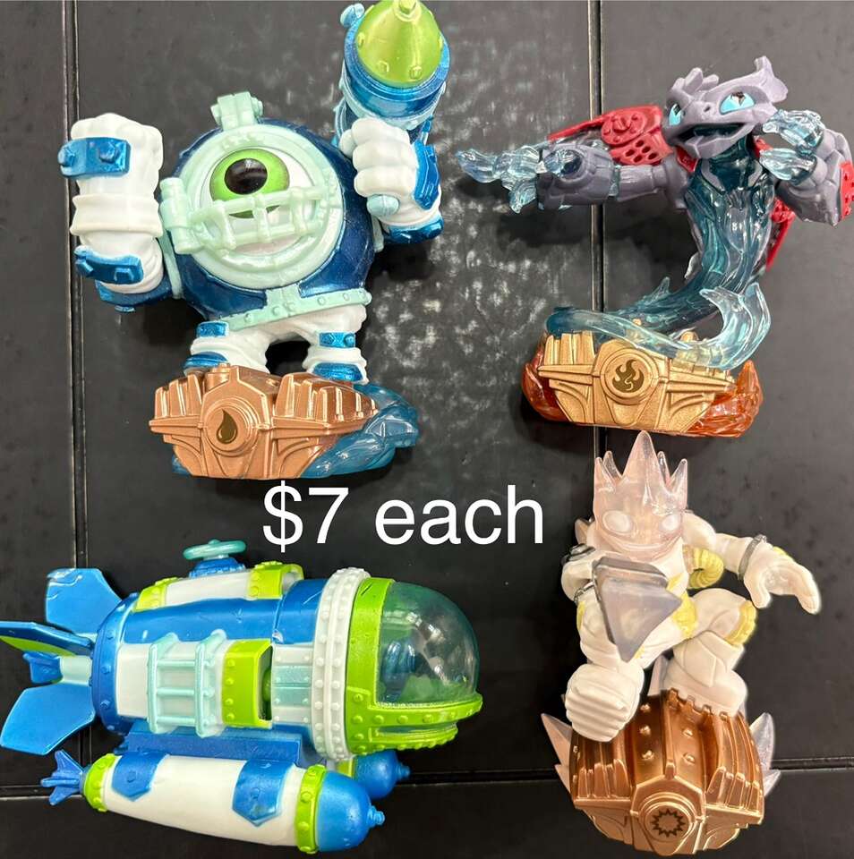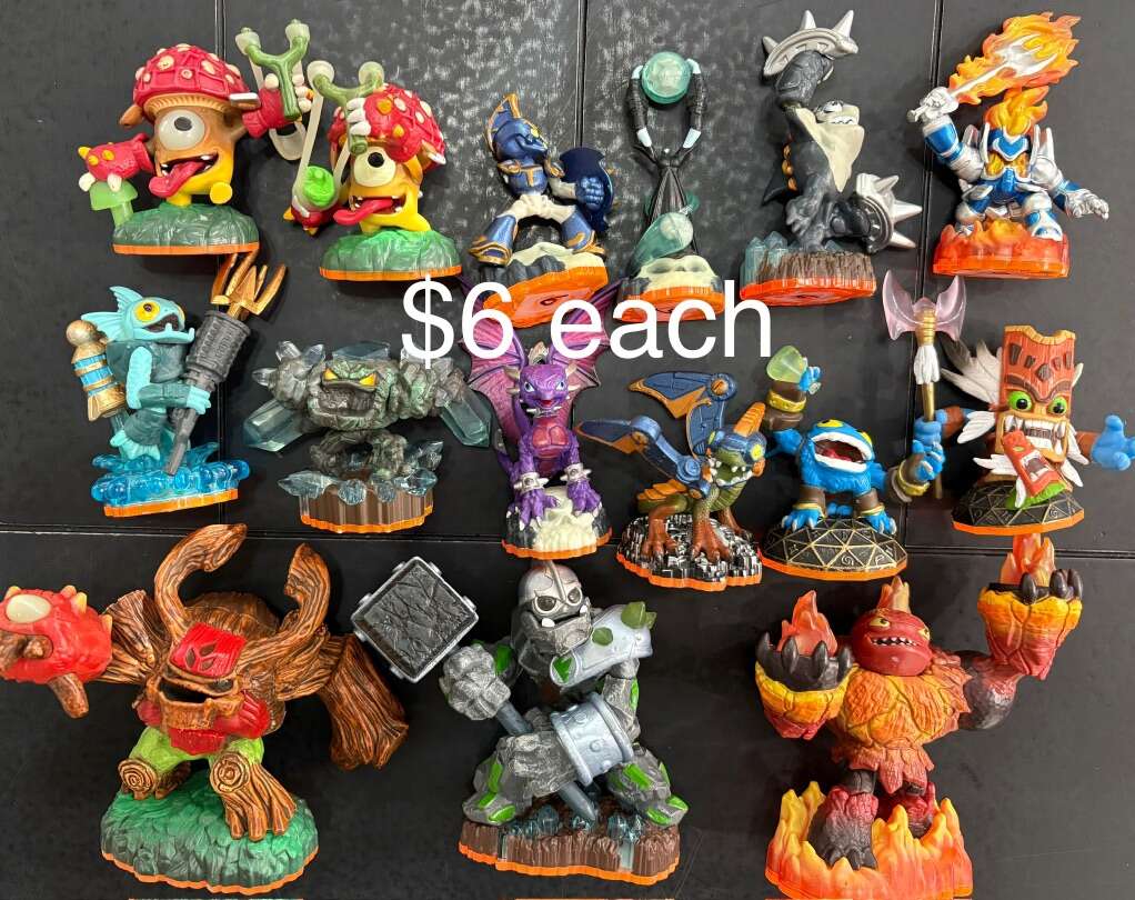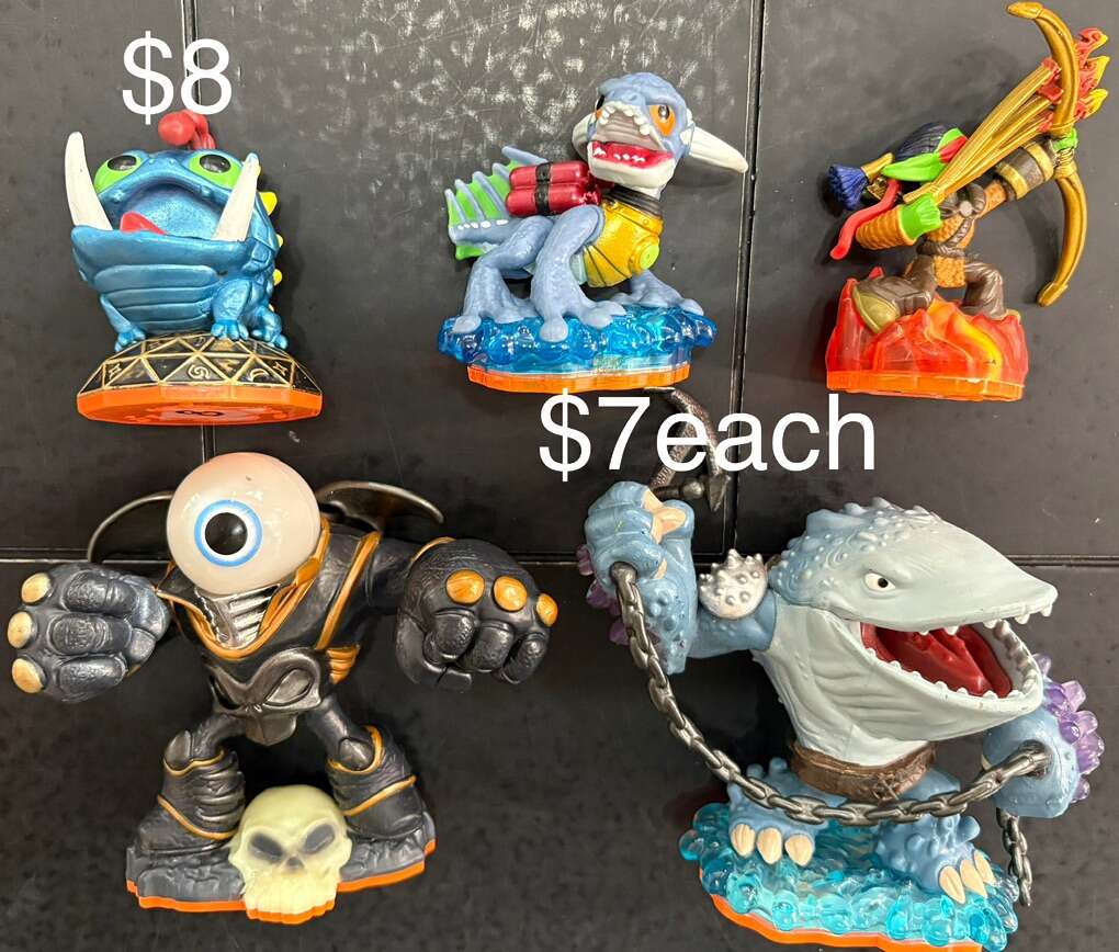 Skylanders Figures, Games, and Extras Prices vary starting @ 3$ and up. I have several figures of each in pictures, I’m willing to trade for others skylanders or any video game stuff. Just let me know what you have.