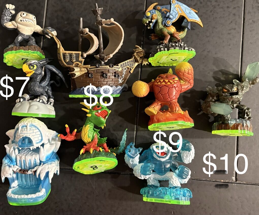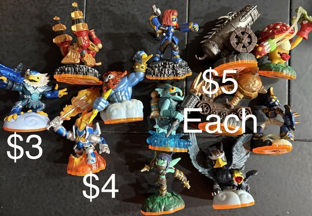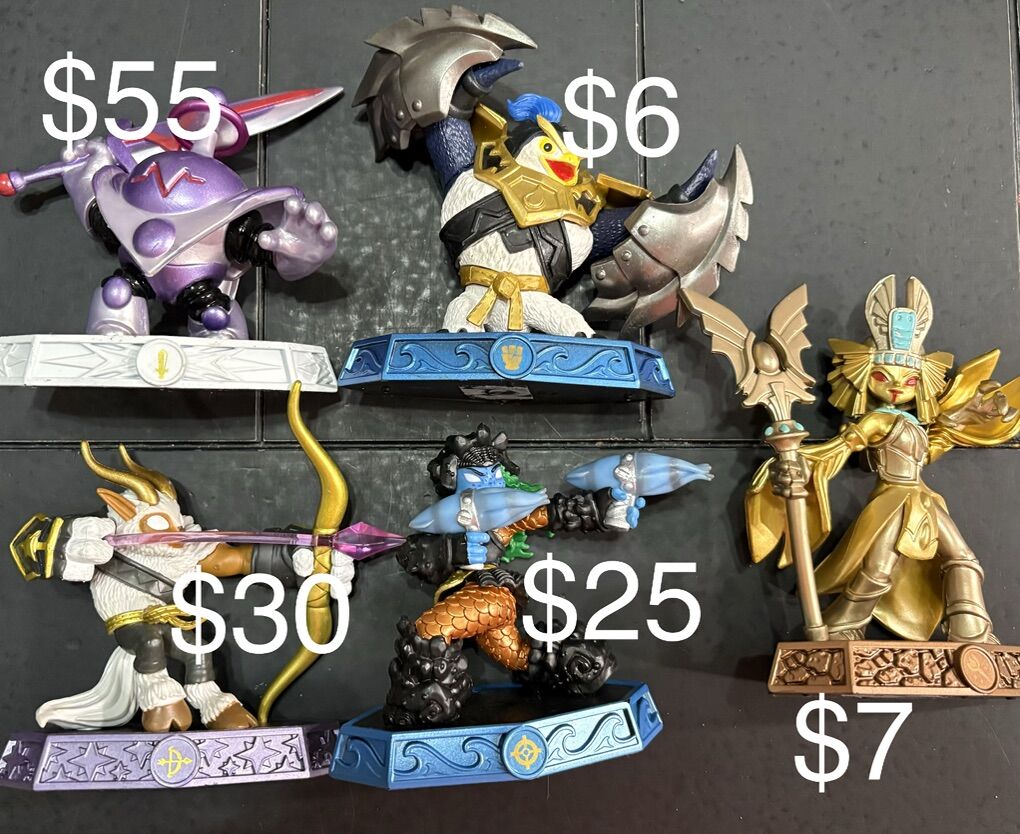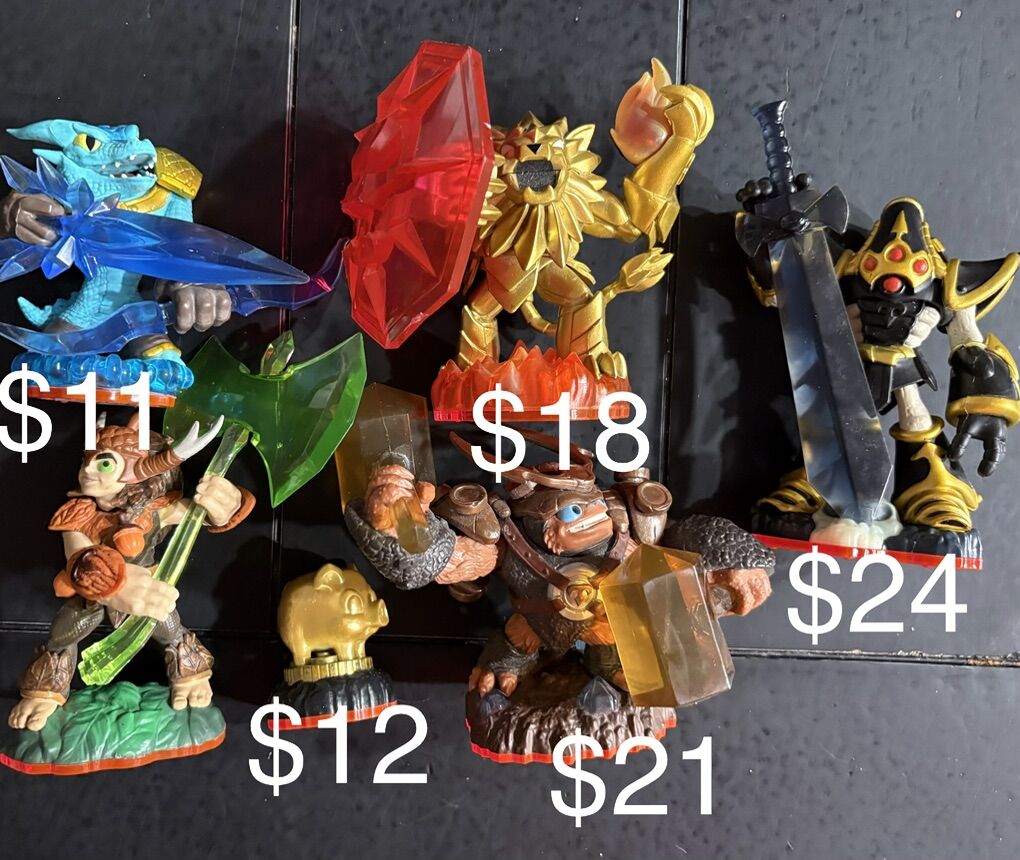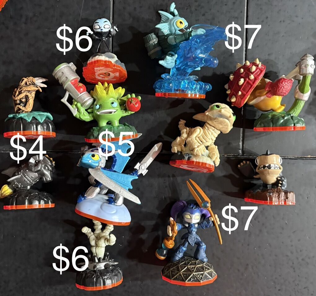 Skylanders Figures, Games, and Extras Prices vary starting @ $4 and up. I have several figures of each in pictures, I’m willing to trade for others skylanders or any video game stuff. Just let me know what you have.