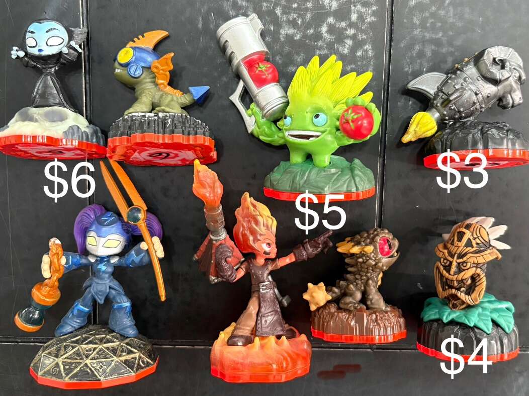 Skylanders Figures, Games, and Extras Prices vary starting @ 3$ and up. I have several figures of each in pictures, I’m willing to trade for others skylanders or any video game stuff. Just let me know what you have.