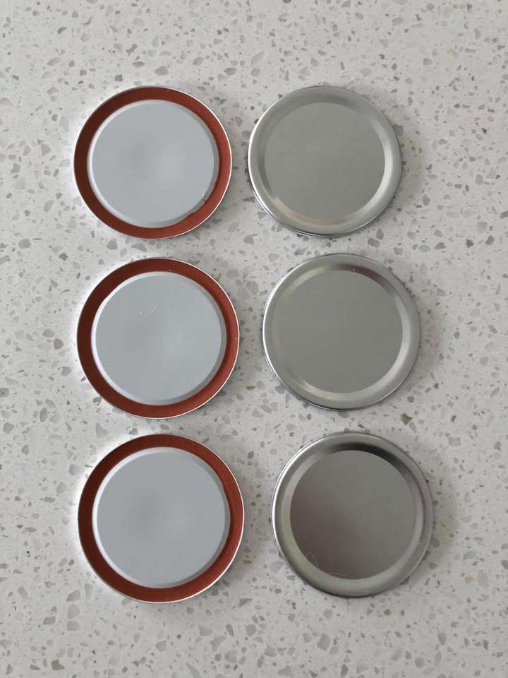 Regular Mouth Canning Lids Sleeve of 100 Lids for $20 Several Sleeves available. Diameter: 70mm, compatible with regular mouth mason jar. Good sealing: leak-proof and airtight as a sealing ring inside the jar lid, maintain your food in fresh and clean condition for a long time. BPA Free Wide Mouth Canning Lids Sleeve of 100 Lids for $20 Several Sleeves available. Diameter: 86mm, compatible with wide mouth mason jar. Good sealing: leak-proof and airtight as a sealing ring inside the jar lid, maintain your food in fresh and clean condition for a long time. BPA Free We have tested them canning chicken in a pressure cooker at 15psi and they worked great. We have also done Grape Juice, Green Beans, Applesauce, and more and have worked great for us. They are unbranded but the same weight as a name brand lid. Bulk pricing available. Call or Text 435-695-3516