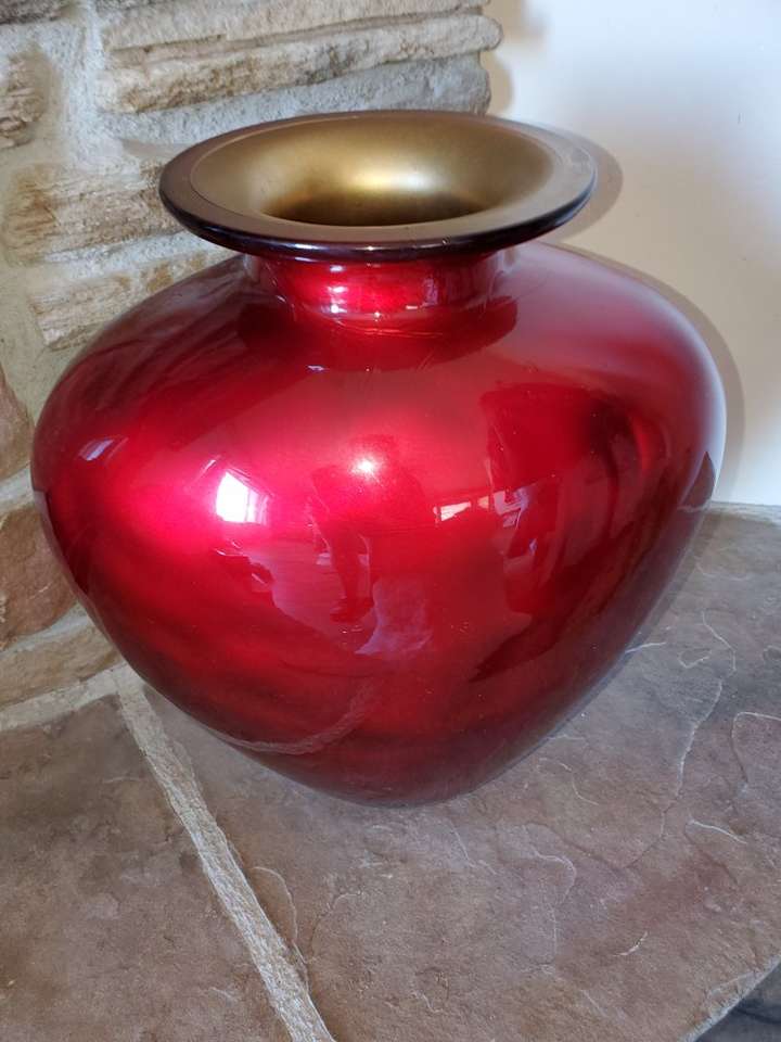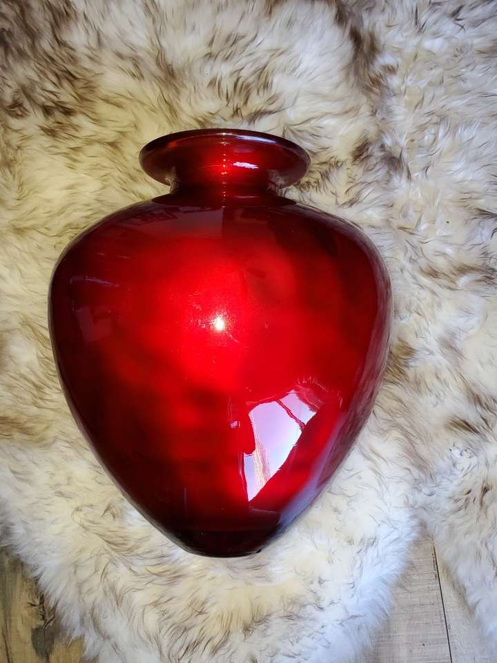 Made in Spain Geourgeous candy apple red vase It's huge and heavy duty, perfect for those Valentines roses/flowers Measures 13"at widest part 14.5"H x 7.5"D Cash or venmo