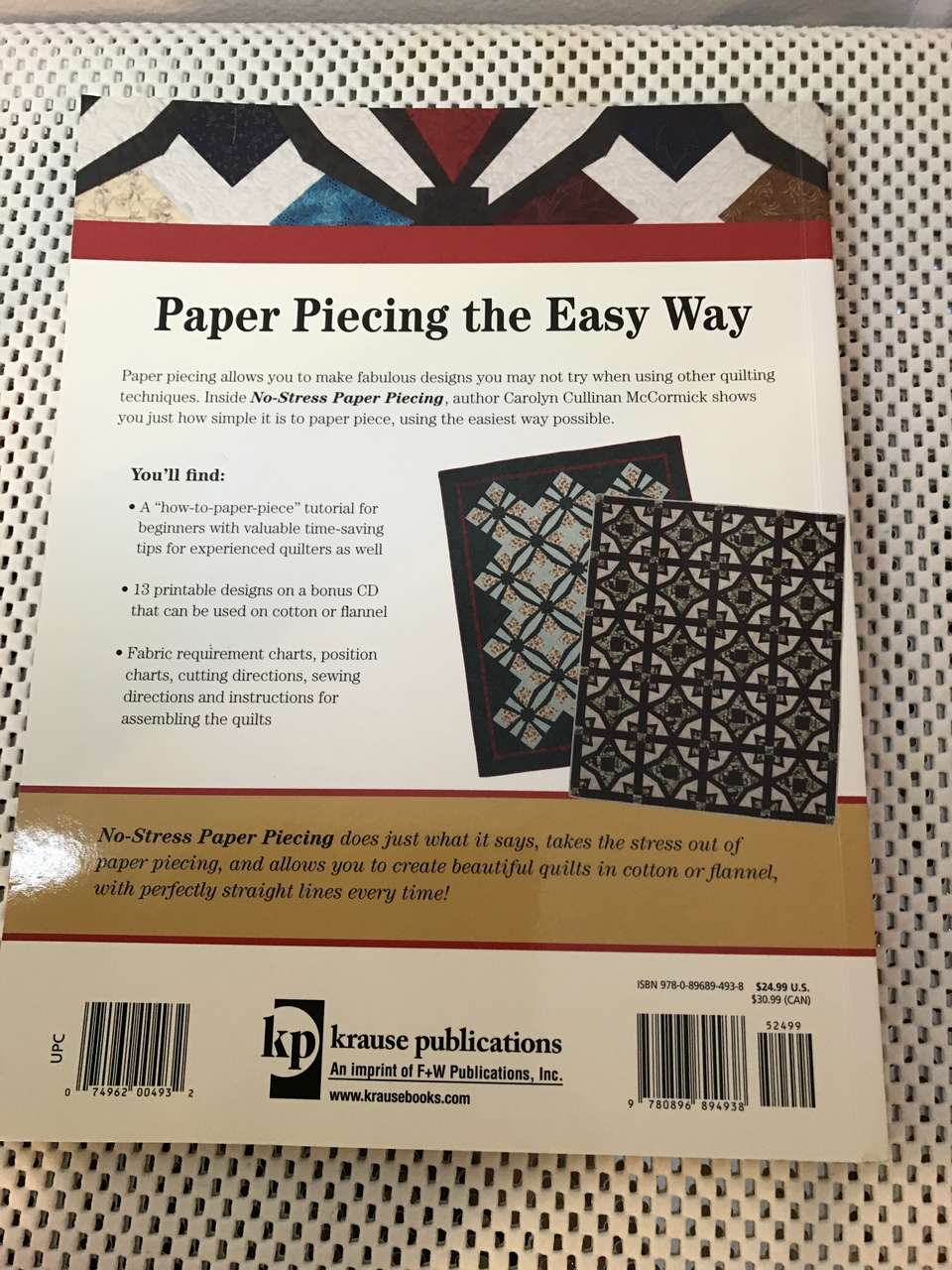 No-Stress Paper Piecing Quilt Book by Carolyn Cullinan McCormick, New and Strip Happy Quilting on a Roll, New, and Elizabeth Anne Quilting Templates 45 degree Diamond, New, and Elizabeth Anne Quilting Templates 60 degree Triangle, New. $50