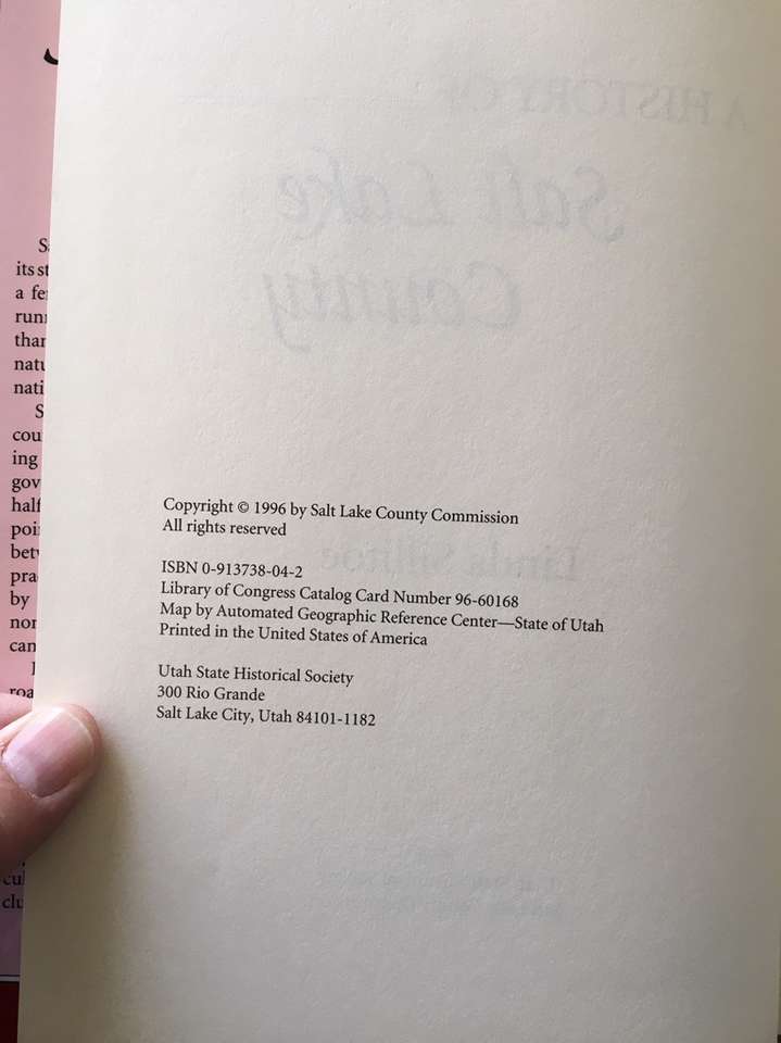 A History of Salt Lake County, by Linda Sillitoe. Part of the Utah Centennial County Historical Series. Published 1996, 370 pages. Excellent condition, including dust jacket. Like new. Text if interested. Cash or Venmo.