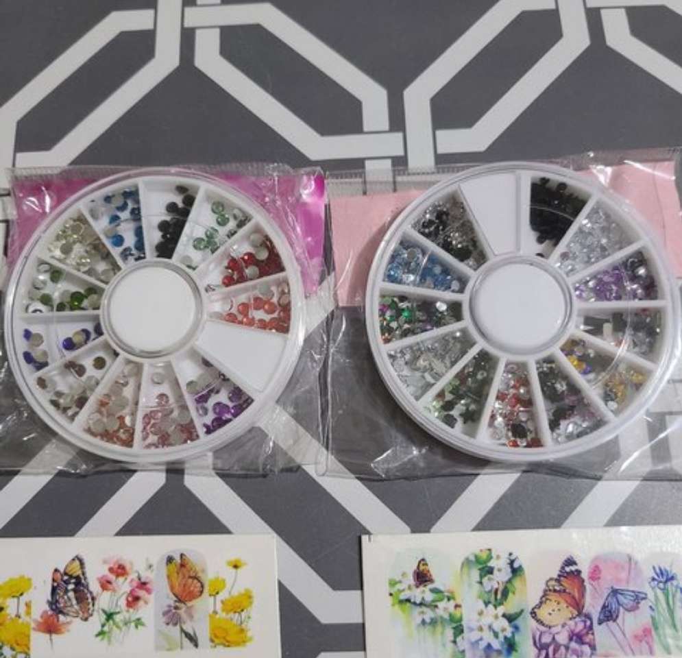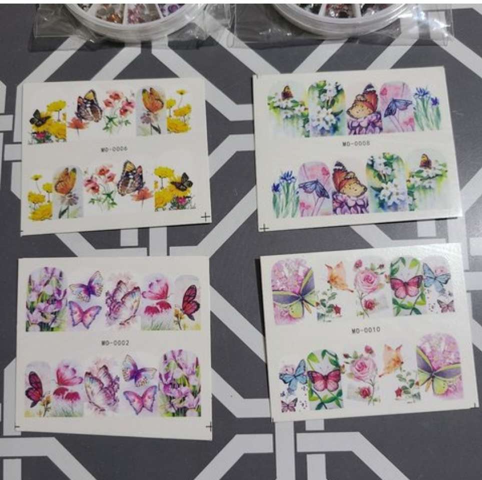This includes 4 sheets of butterfly nail art stickers and 2 packs of rhinestones. These are new never opened. All my items come from a smoke free home. Any questions please feel free to contact me.